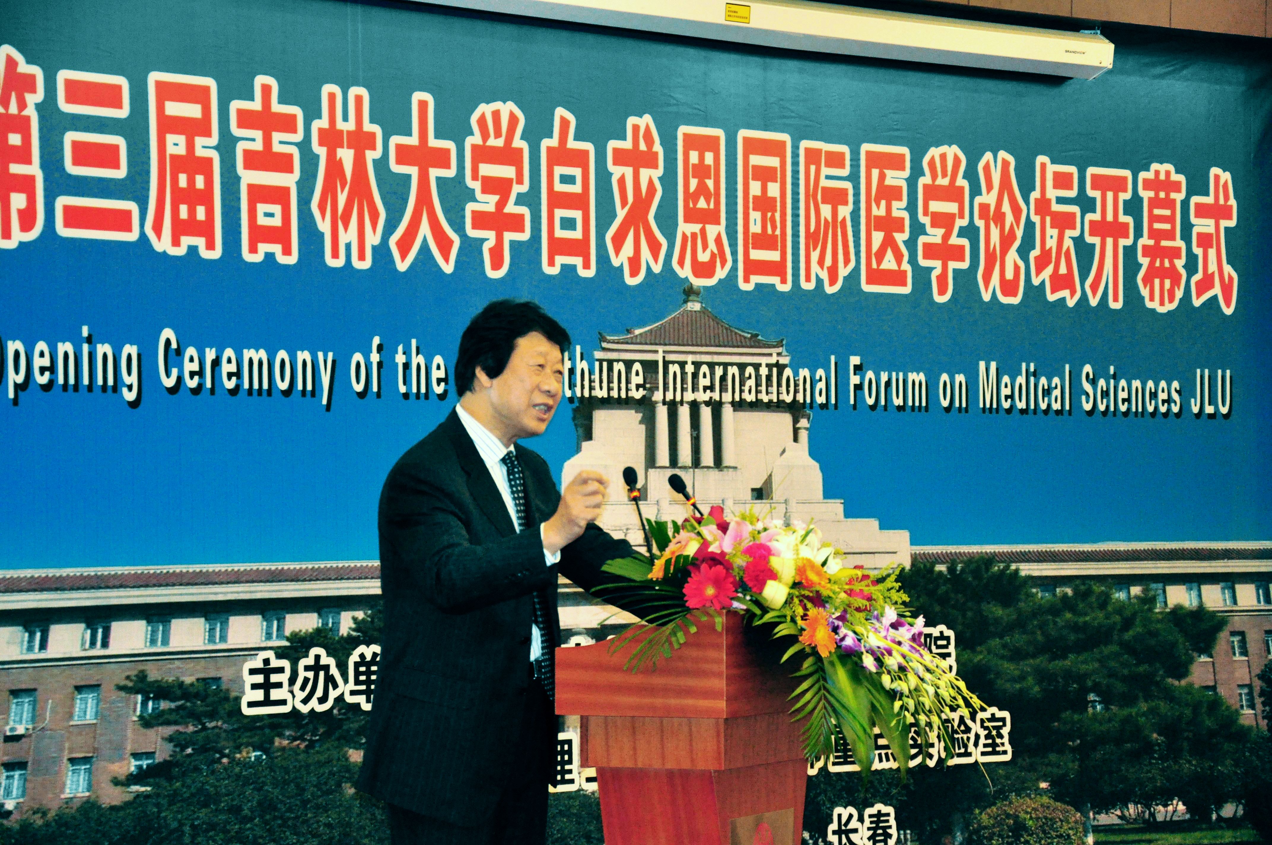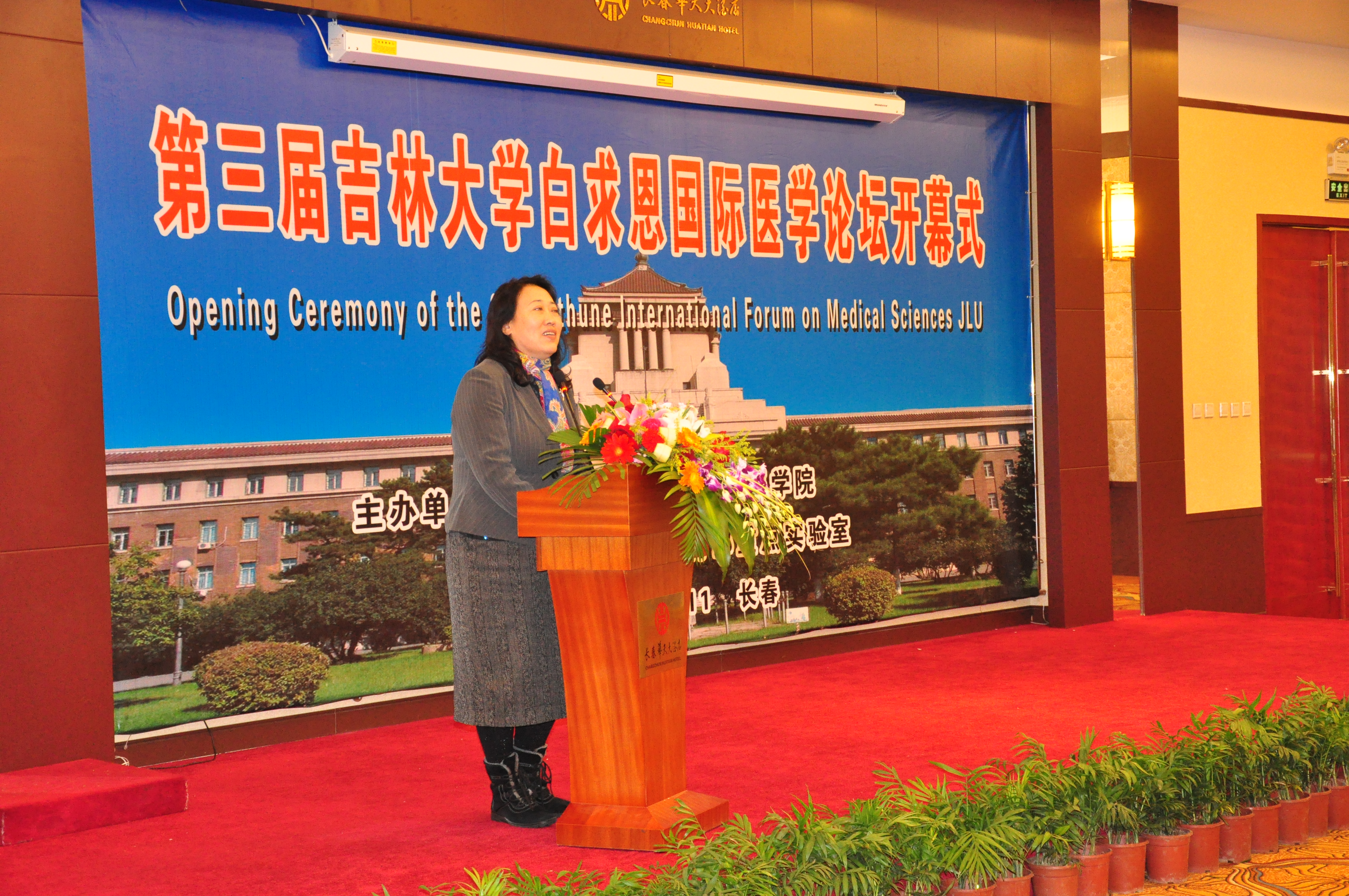 11月16日,吉林大学举办第三届白求恩国际医学论坛。副校长王冠军参加开幕式并讲话,病理生物学教育部重点实验室主任李玉林主持开幕式。王冠军在致辞中对国内外专家表示欢迎,并表示,吉林大学将把论坛做成一个品牌,促进医学的长足发展。校长助理、白求恩医学院院长李凡在致辞中回顾了白求恩医学院以往工作,并号召大家一起努力,创造医学新的辉煌。