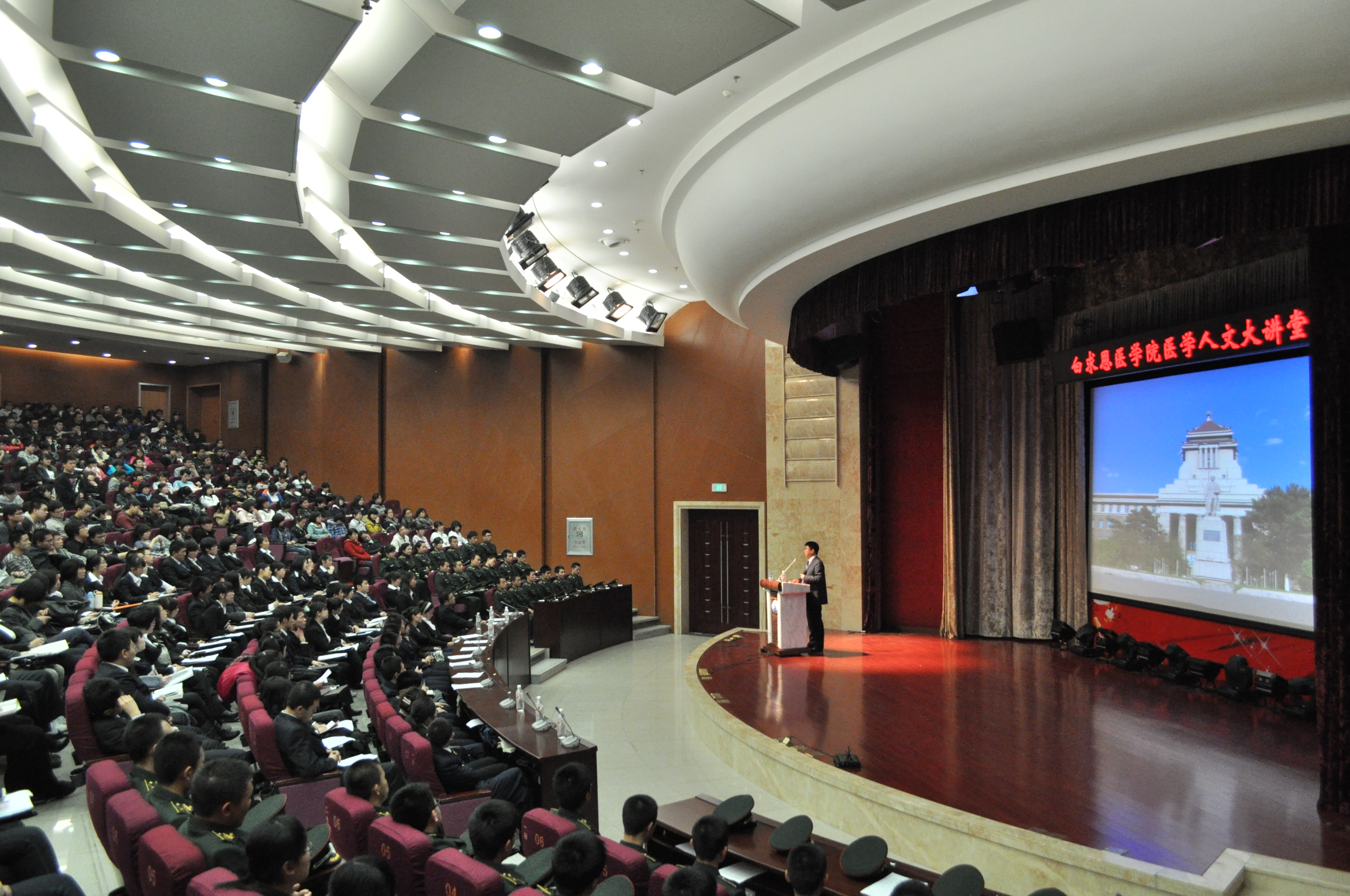 3月31日晚,白求恩医学院在吉林大学白求恩第一医院学术报告厅内举行了“医学人文大讲堂”第14讲——“医学与阳光”,本场讲座的主讲嘉宾是吉林大学副校长、白求恩医学部学部长、白求恩第一医院院长王冠军教授。白求恩医学院党委副书记兼副院长苑锐、学生工作办公室全体辅导员、学院全体学生干部及部分学生代表等600余人聆听了讲座。讲座由团委副书记李梓萌主持。