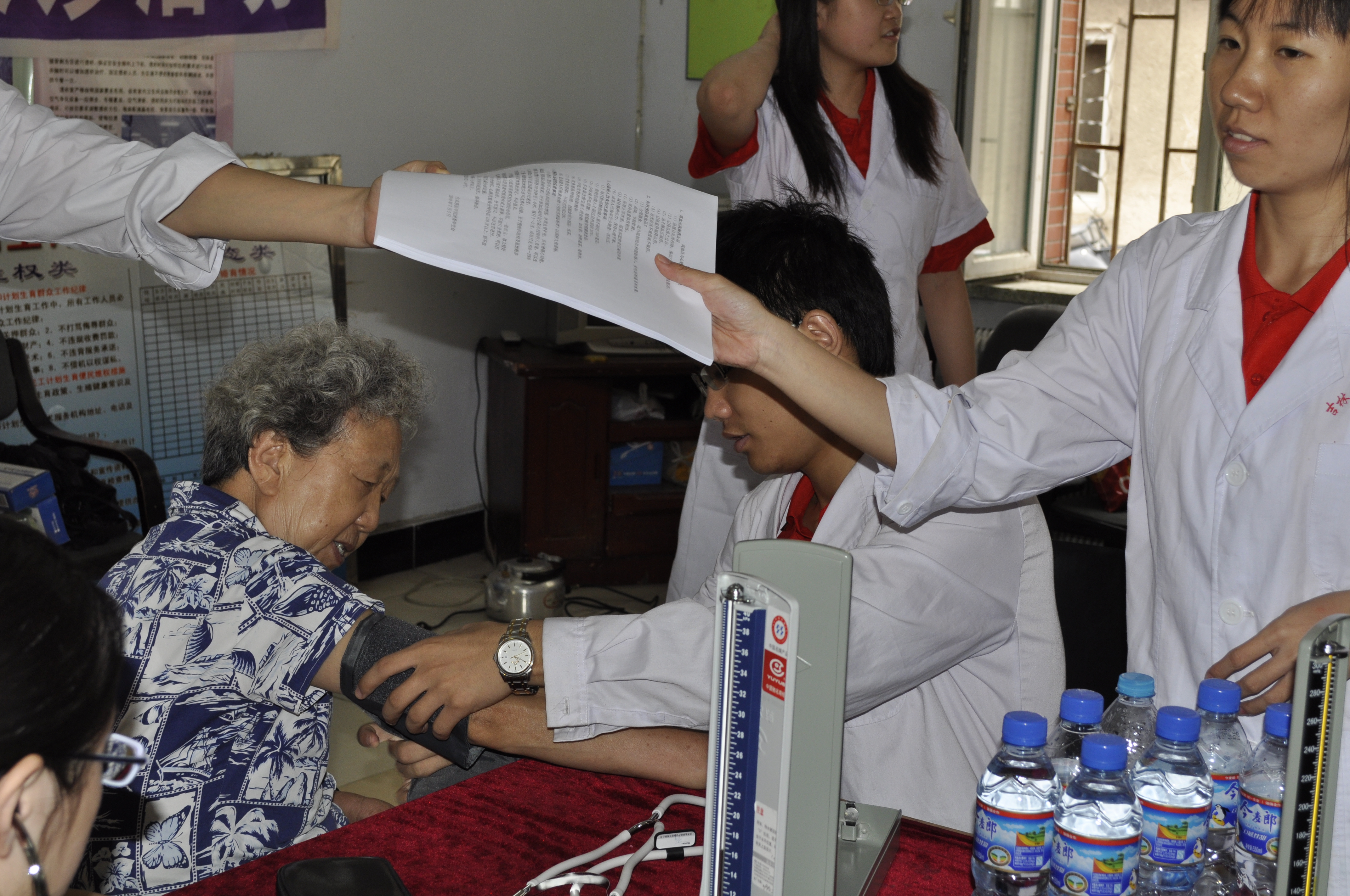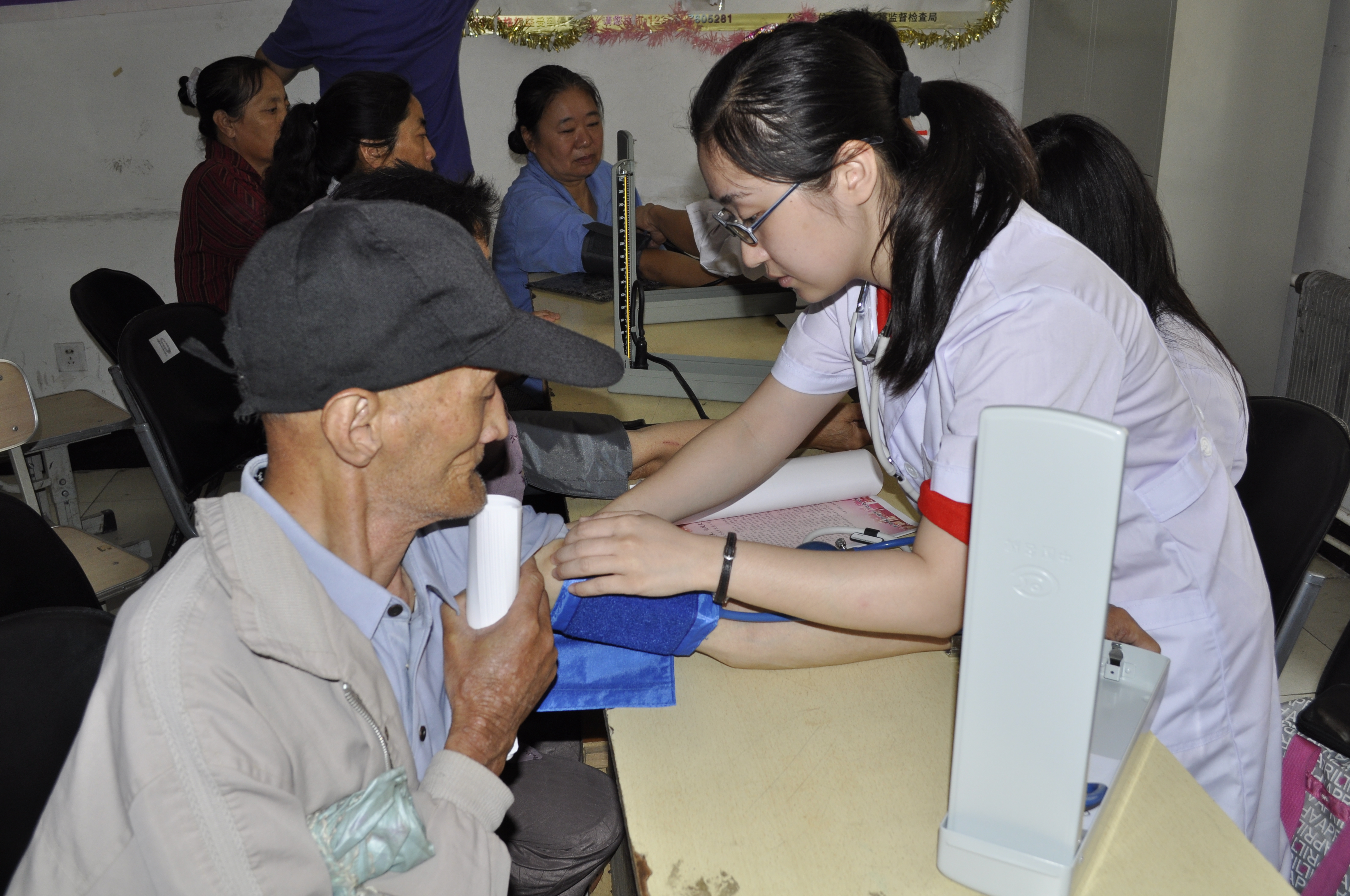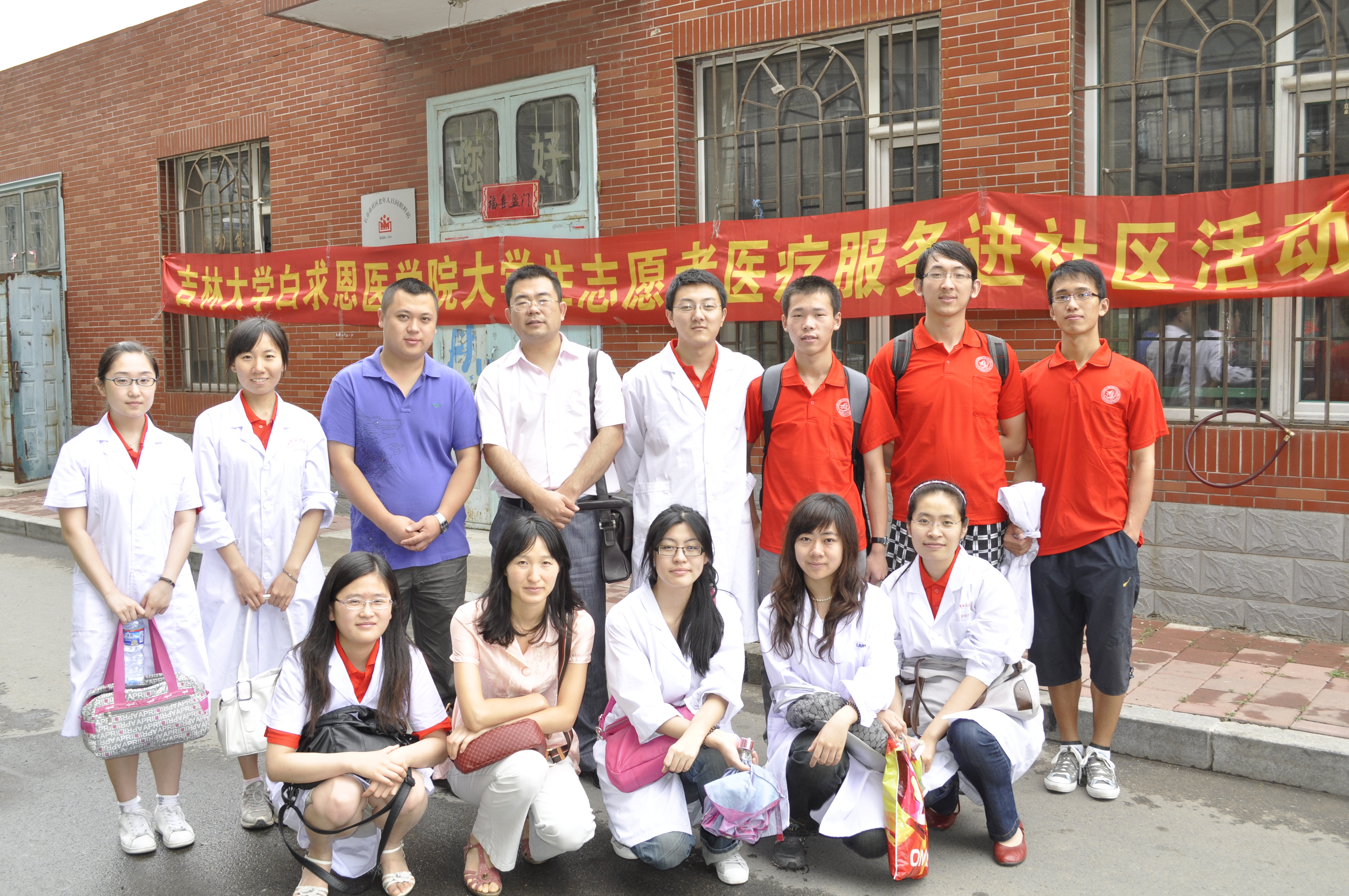 长春市普阳街道是白求恩医学院社会实践基地之一,当天学院医疗服务志愿者分成三个小分队分别在普阳街道下属的建阳社区、蓝天社区及升阳社区设立的医疗服务点为社区居民进行医疗服务与咨询。