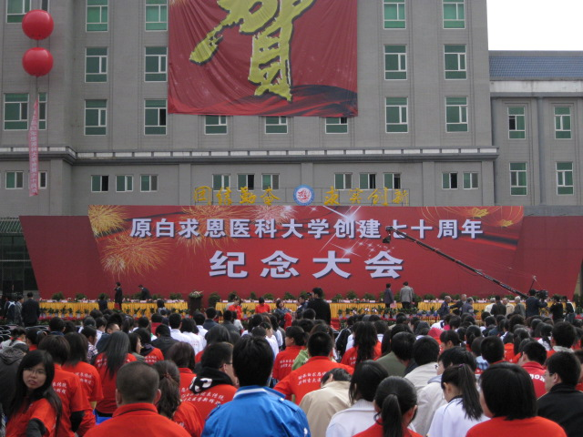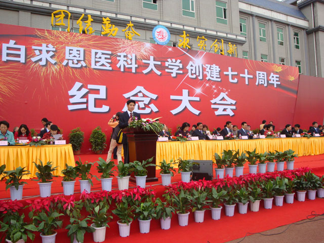卫生部部长陈竺为庆典亲笔题词“继承和发扬白求恩精神,做一切为了人民利益的医务工作者”,党委书记陈德文题词“继承和发扬白求恩精神,努力攀登医学科学高峰”。