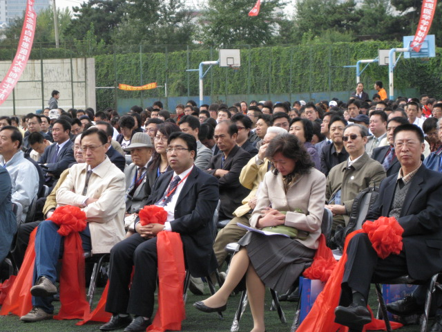 在庆典大会上,展涛、李玉林代表学校接受了校友沈小平代表海外校友向母校捐赠的纪念品。吉林大学总会计师杜莉宣读了《关于吉林大学第一医院等四个法人单位更名的决定》,决定将吉林大学白求恩医学部四个独立法人单位更名为吉林大学白求恩第一医院、吉林大学白求恩第二医院、吉林大学白求恩第三医院(中日联谊医院)、吉林大学白求恩口腔医院。