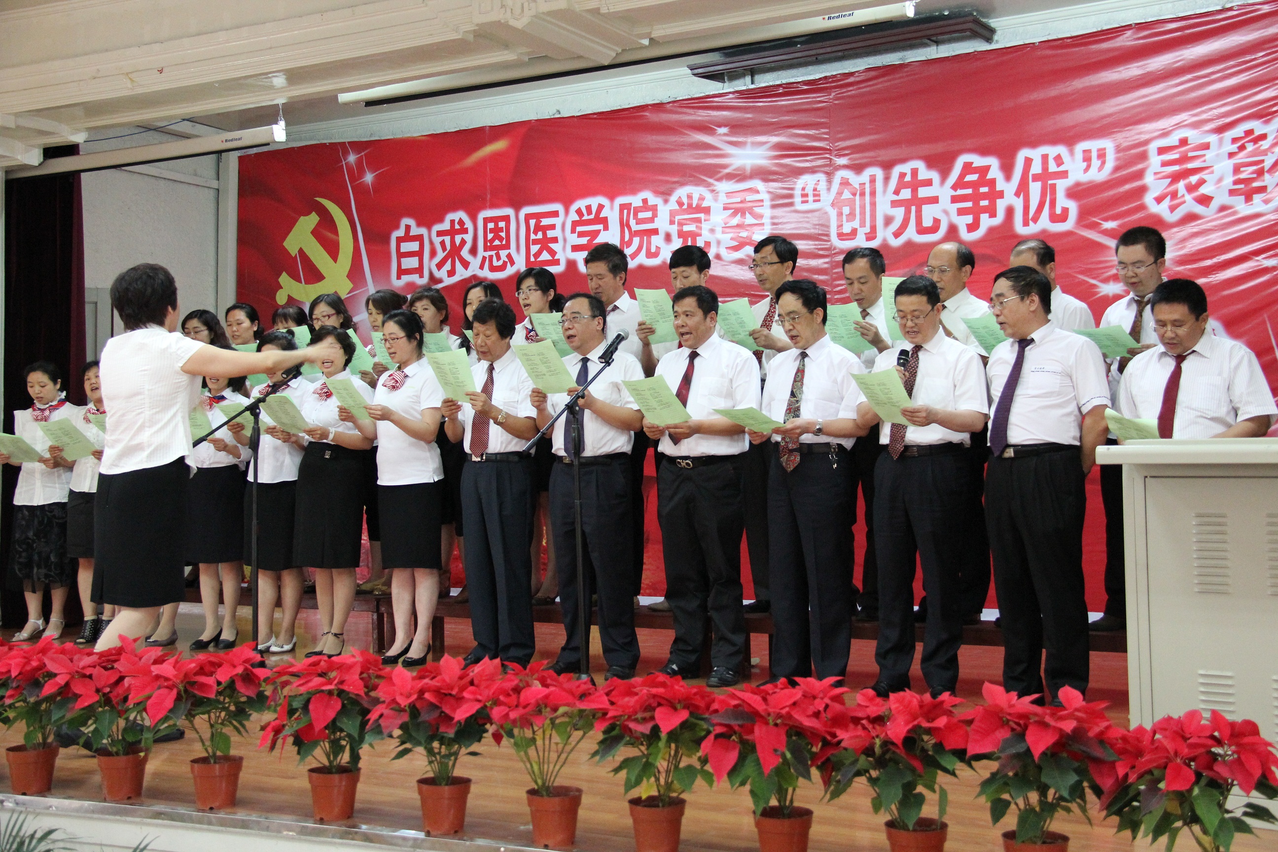白求恩医学院庆祝建党90周年活动系列报道之十二——白求恩医学院党委隆重举行“创先争优”表彰大会暨庆祝建党90周年红歌会