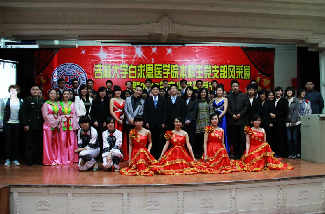 为进一步贯彻校党委关于在创先争优活动中深入开展基层组织建设年活动的具体要求,通过多样的校园文化形式,丰富同学的业余文化生活。4月20日晚,在吉林大学新民校区基础楼二楼多功能学术报告厅举行了白求恩医学院本科生党支部风采展暨2012年文化节开幕式。吉林大学白求恩医学院党委书记屈英和、关心下一代工作委员会主任孙汉臣、党委副书记费淑波、学生工作办公室主任吴剑锋、团委书记夏燕来、党务秘书王希、辅导员魏宇航及全体本科生党员、部分积极分子代表参加了本次开幕式。白求恩医学院本科生各党支部积极筹划、充分准备、立足创新,在开幕式当晚,以党支部为单位的一个个精彩节目展现了白医学子良好的精神风貌。