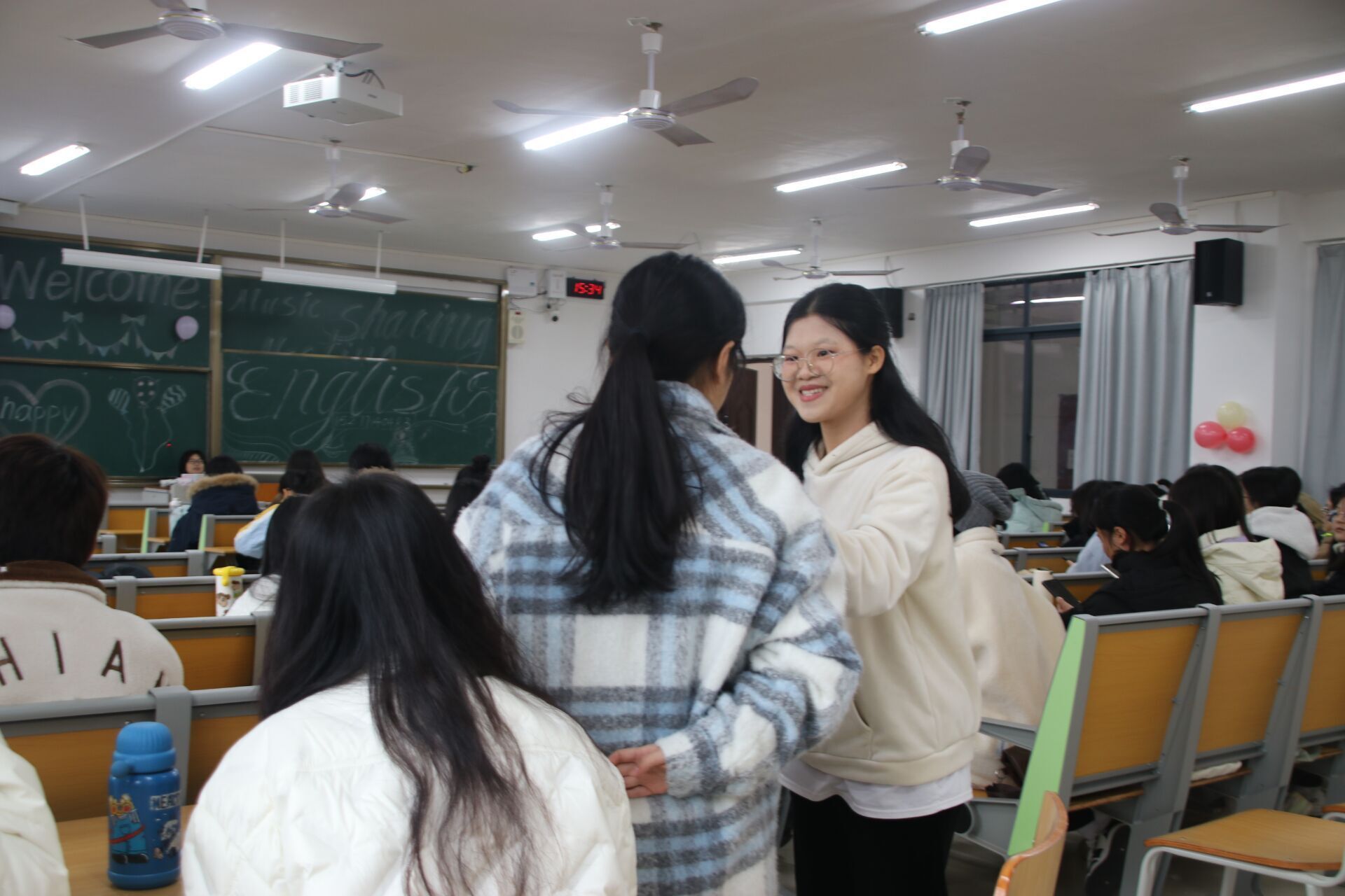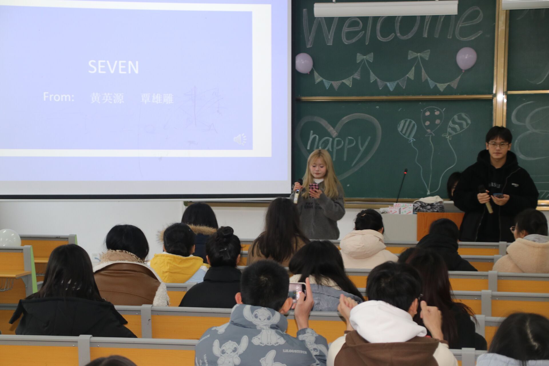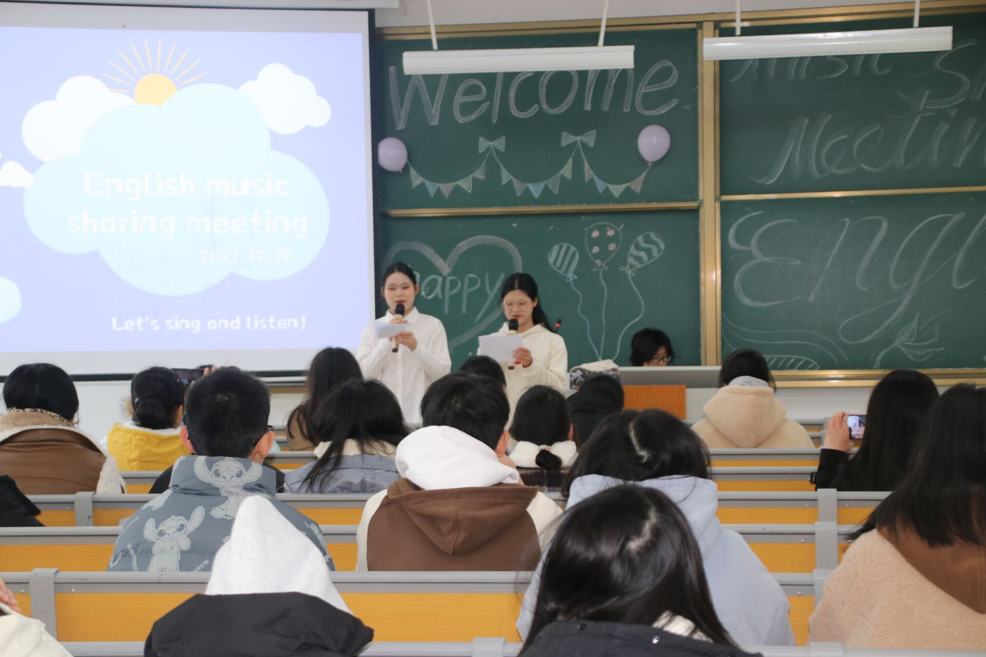 为丰富同学们的校园生活,提高大家的英语素养,让同学们在忙碌的学习生活中放松身心,感受音乐的魅力,外国语学院NEW VOICE英语社于2023年12月17日下午在武鸣校区实验楼2A-203举办英语角子活动—英文音乐分享会。本次活动内容丰富、形式多样,得到同学们的积极参与,活动现场热闹非凡。、