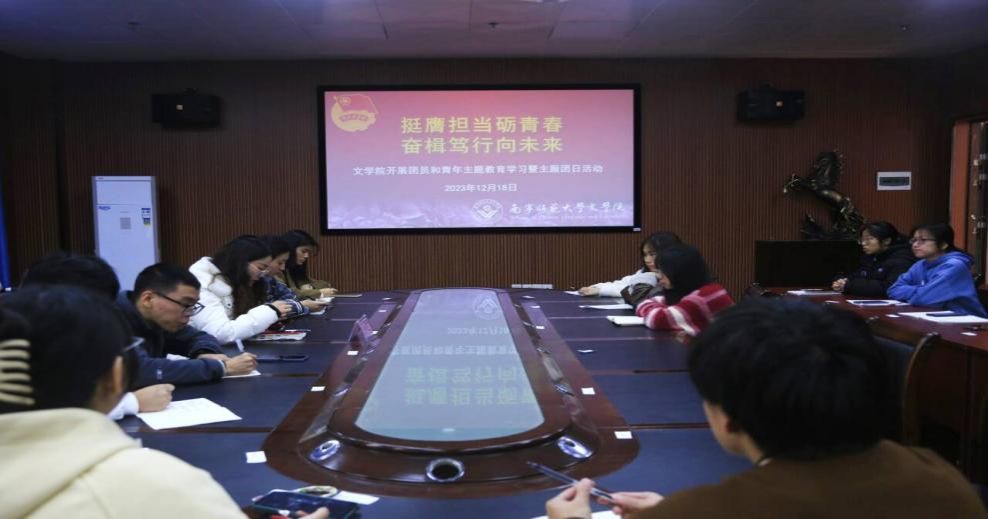 为深化青年团员和学生对时代主题的理解,提升其社会责任感,鼓励同学们坚定理想信念,勇担时代责任,文学院于12月18日在理科综合楼404会议室开展以“挺膺担当砺青春,奋楫笃行向未来”为题的团员和青年主题教育学习暨主题团日活动。此次活动由文学院团委书记钟振花主持,文学院团委学生会全体常委及各部门负责人参与了本次活动。