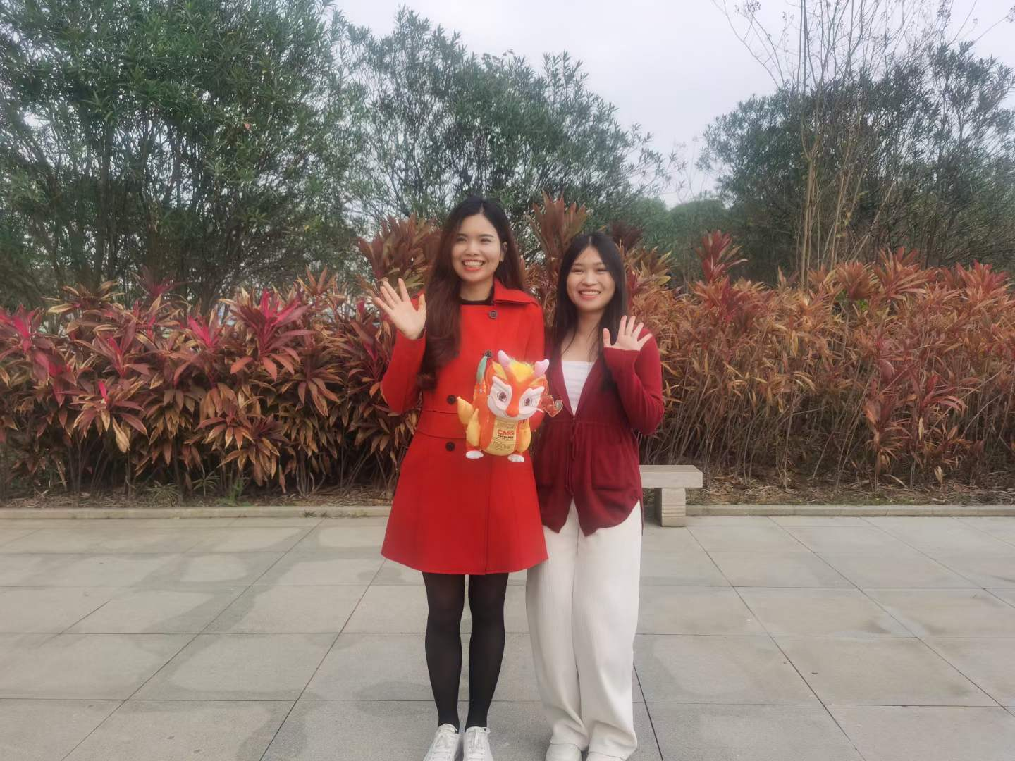 图7 越南留学生黄明柳(左)、秋河(右)一起拜年