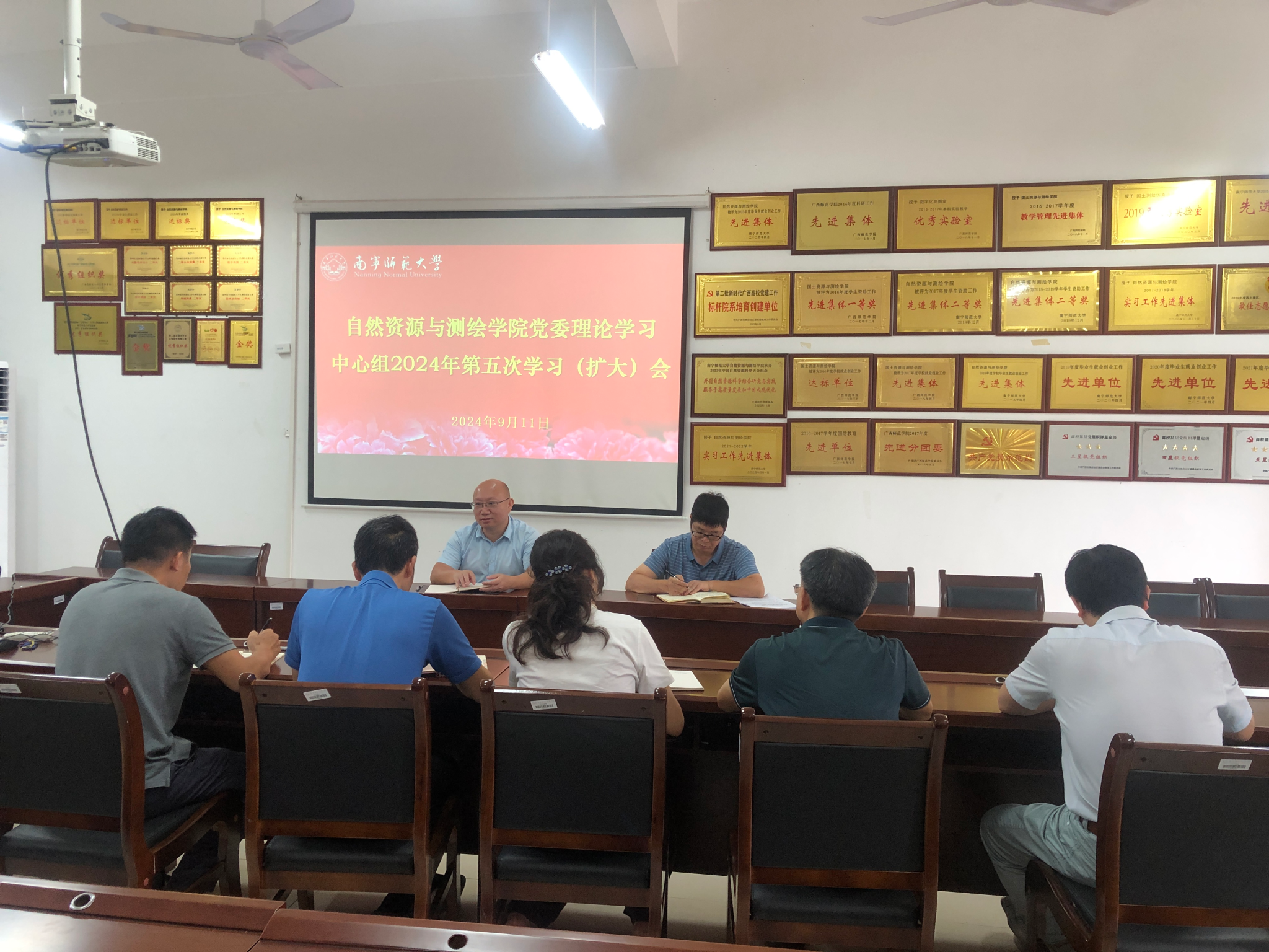 9月11日,自然资源与测绘学院在武鸣校区地源楼A412会议室召开学院党委理论学习中心组扩大会议,由学院院长陆汝成传达学习习近平总书记在全国教育大会上的重要讲话精神,对学院学习宣传贯彻大会精神进行部署。学院党委副书记莫雅兰、副院长杨小雄、副院长段炼、副处级组织员彭定新及各系主任、学院党办院办主任参加会议。学院党委书记黎先主持扩大会。