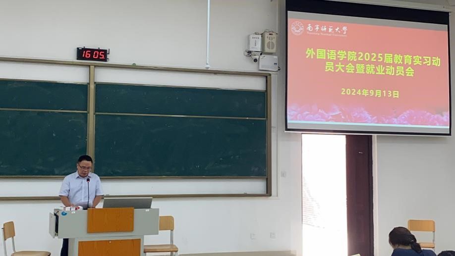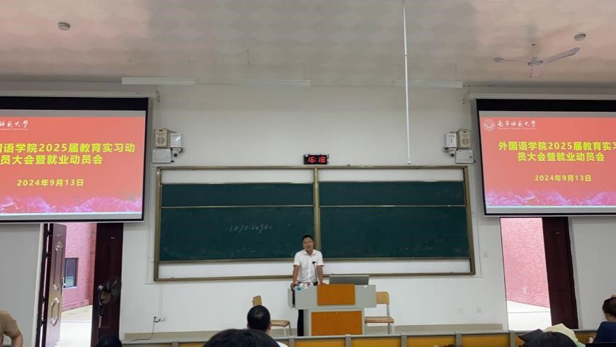 为了让2025届毕业生熟悉实习任务,激发毕业生们的实习热情,确保秋季教育实习的顺利开展及就业求职工作的尽早启动,2024年9月13日下午外国语学院在武鸣校区实验2A-105教室召开2025届本科毕业生教育实习动员大会暨就业动员大会。本次大会由教师教育教研室主任林绍丽老师主持,外国语学院党委苏华书记、刘晖晖副书记、毕业班辅导员、各实习带队老师以及2025届本科毕业生参加了本次会议。