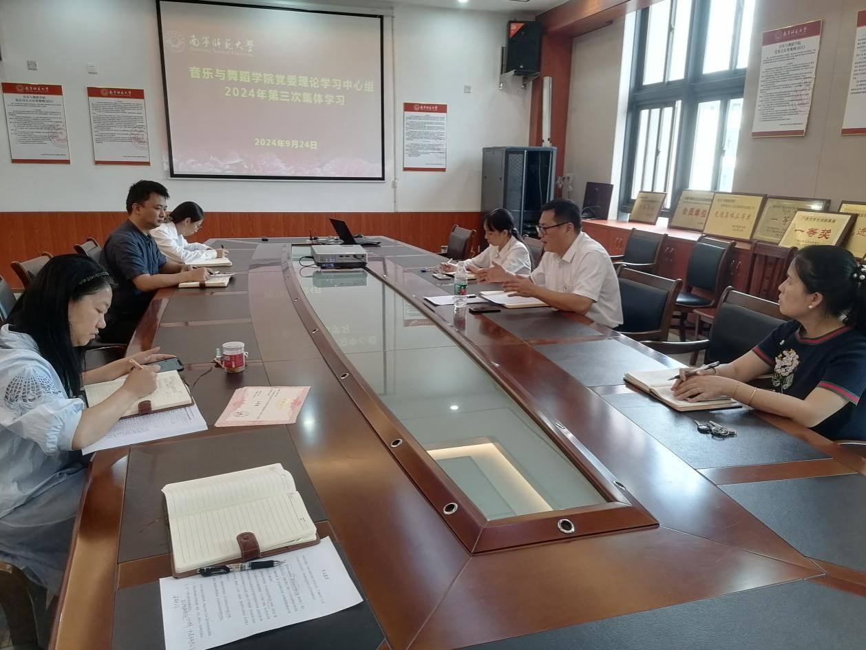 2024年9月24日,音乐与舞蹈学院党委理论学习中心组开展2024年第三次集中学习。本次集中学习由音乐与舞蹈学院党委书记陈宇主持,学院党委委员参加了集中学习。