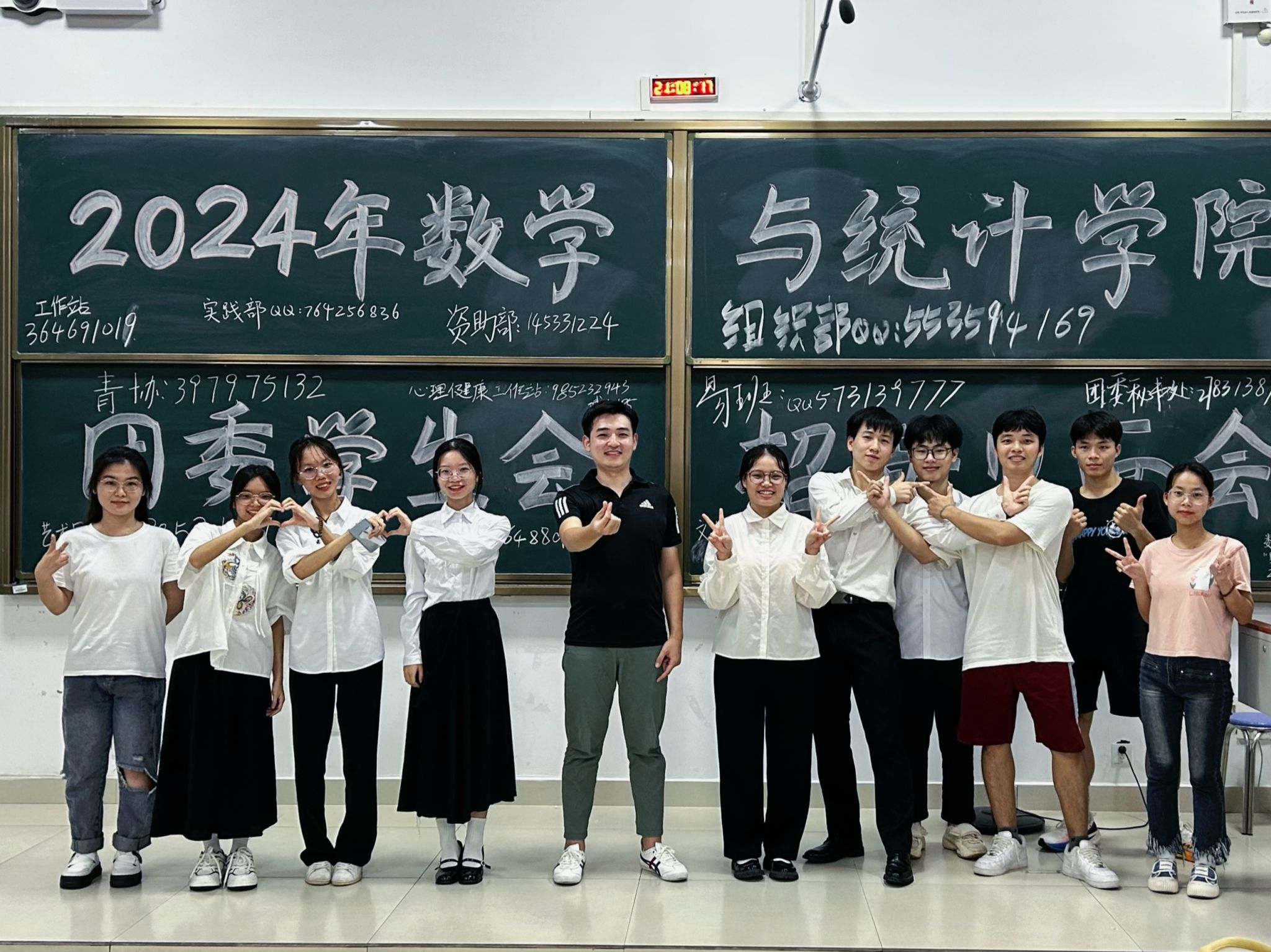 9月20日晚,数学与统计学院在武鸣校区1-214、1-215教室举办团委学生会新生见面会。该院辅导员梁卡霖老师、张硕老师、2024级各班助班、团委学生会各部门、各工作站以及两大社团及全体新生参加此次活动。