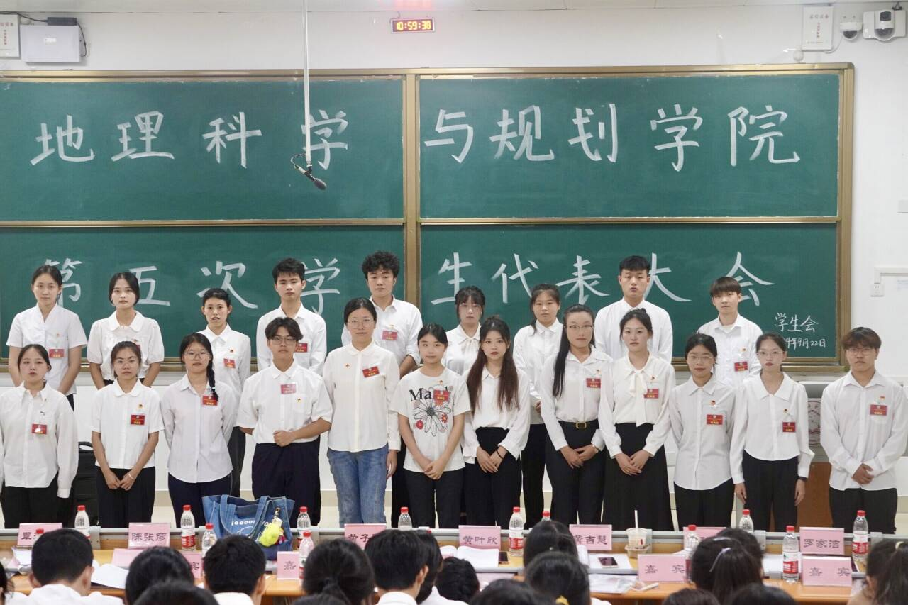 为进一步推动学院学生会的发展,增强学生组织的凝聚力,发挥学生组织在学生群体中先锋模范作用,2024年9月22日,地理科学与规划学院在武鸣校区2号教学楼109教室召开第五届学生代表大会。学校各学生组织机构代表、党团代表以及各班级代表应邀参与。