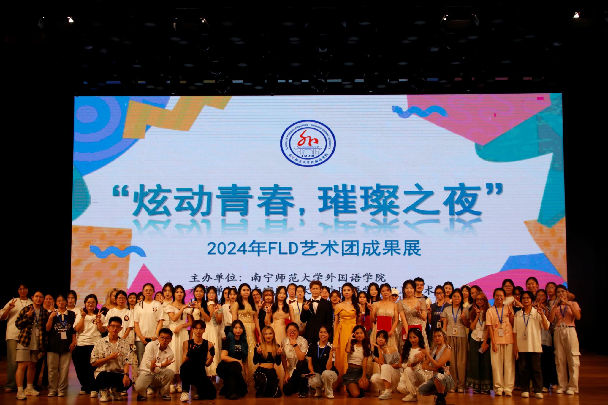 文化之桥,艺术无界。为了促进文化交流,提升同学们艺术鉴赏能力,营造学院的艺术氛围,外国语学院于2024年9月24日在武鸣校区音舞楼一号报告厅举行FLD艺术团“炫动青春,璀璨之夜”成果展。出席本次活动的有外国语学院学工办的黄慧梅老师、院团委学生会团副主席团成员、FLD艺术团执行团长及2024级新生。