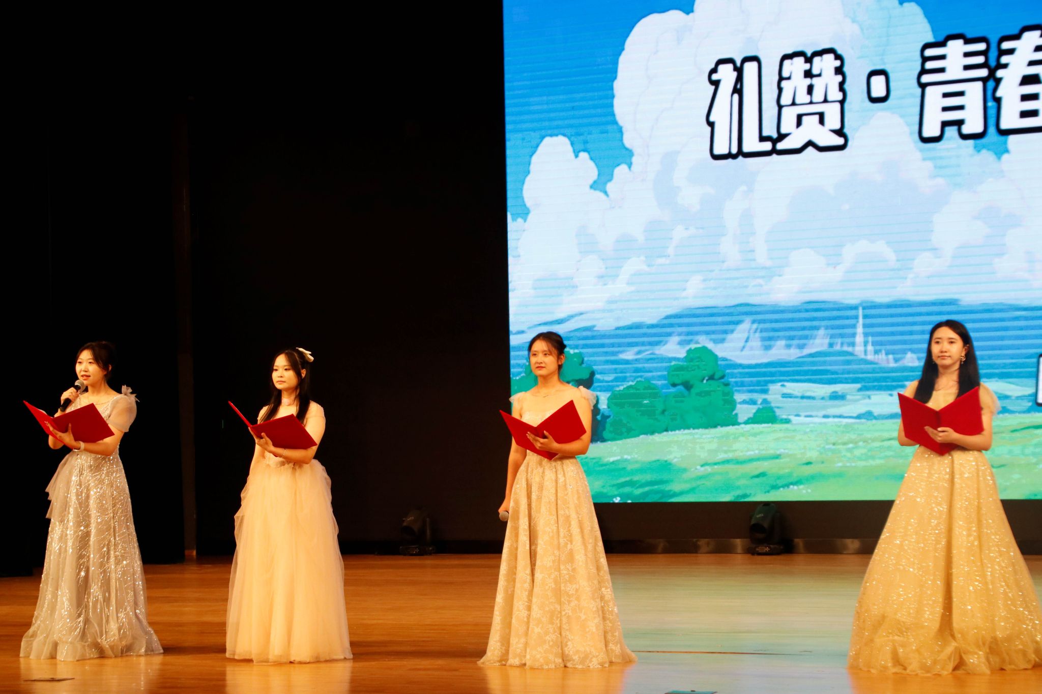 本次成果展由热情洋溢的舞蹈《BABYMONSTER》开场,随后FLD艺术团的执行团长上台发言,接着,成果展正式开始。FLD声乐组成员给大家带来了吉他弹唱《凄美地》,独唱《没有名字的夜晚》,以及合唱《安静》、《踮起脚尖爱》、《习惯失恋》,观众们都沉浸在优美的歌声中。此外,FLD舞蹈组成员活力四射的《FOREVER》、动感十足的《Chk Chk Boom》和火热激情的舞蹈串烧,使晚会的气氛来到高潮。期间,FLD主持组朗诵的《礼赞•青春》,在柔和的灯光下,朗诵者的声音韵味十足,如音符般触动听众心弦,全场沉浸于声音与情感交织的盛宴中。