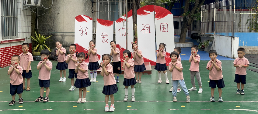 9月30日早上,全体师幼齐聚操场,举行了庄严的升旗仪式。伴随着雄壮的国歌声,五星红旗冉冉升起,师生一起唱国歌。随后,中二班小朋友带领着全体老师小朋友一起表演手势舞《中国么么哒》,嘹亮的歌声在校园上空回荡,激荡着每个人的心灵。