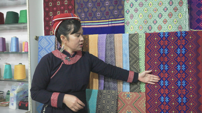随后调研组一行驱车先后前往位于崇左市龙州县金龙镇的那莫屯、板池屯(美女村),走入编织壮锦的老奶奶家中,走进壮寨木屋,观摩、拍摄传承了千百年的壮锦制作过程。一代又一代的壮乡人凭借着自己的双手,织出许多精品壮锦,深受大家欢迎,近年来得益于互联网直播带货,越来越多的精品壮锦走出大山,走进城市,村民收入得到明显增长,乡村面貌得到了明显改善。