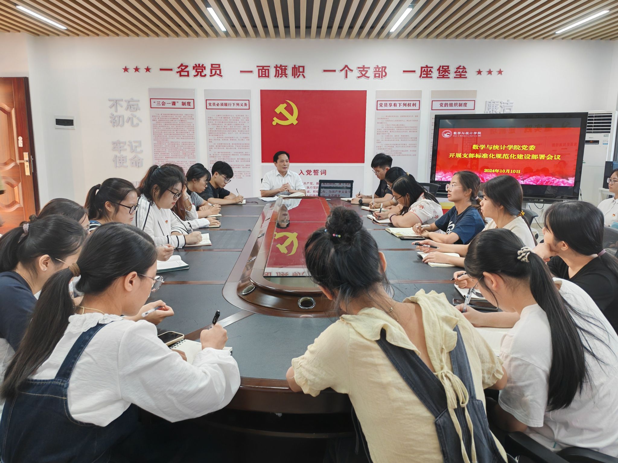 为深入推进基层党组织标准化规范化建设,提升学院党建工作质量,10月10日下午,数学与统计学院在数统楼A501党员活动室召开基层党组织标准化规范化建设部署会议。学院党委余敢才书记、各支部书记、支委参加会议。