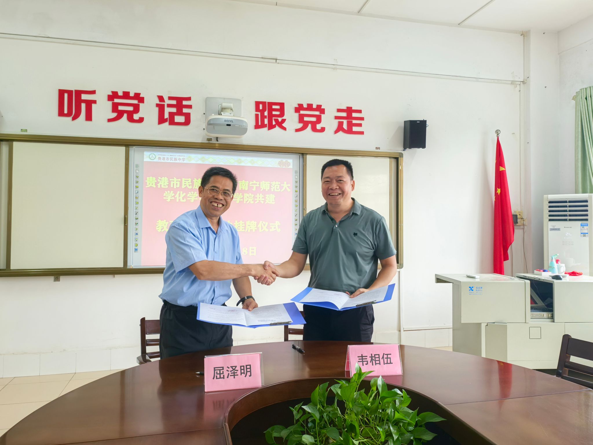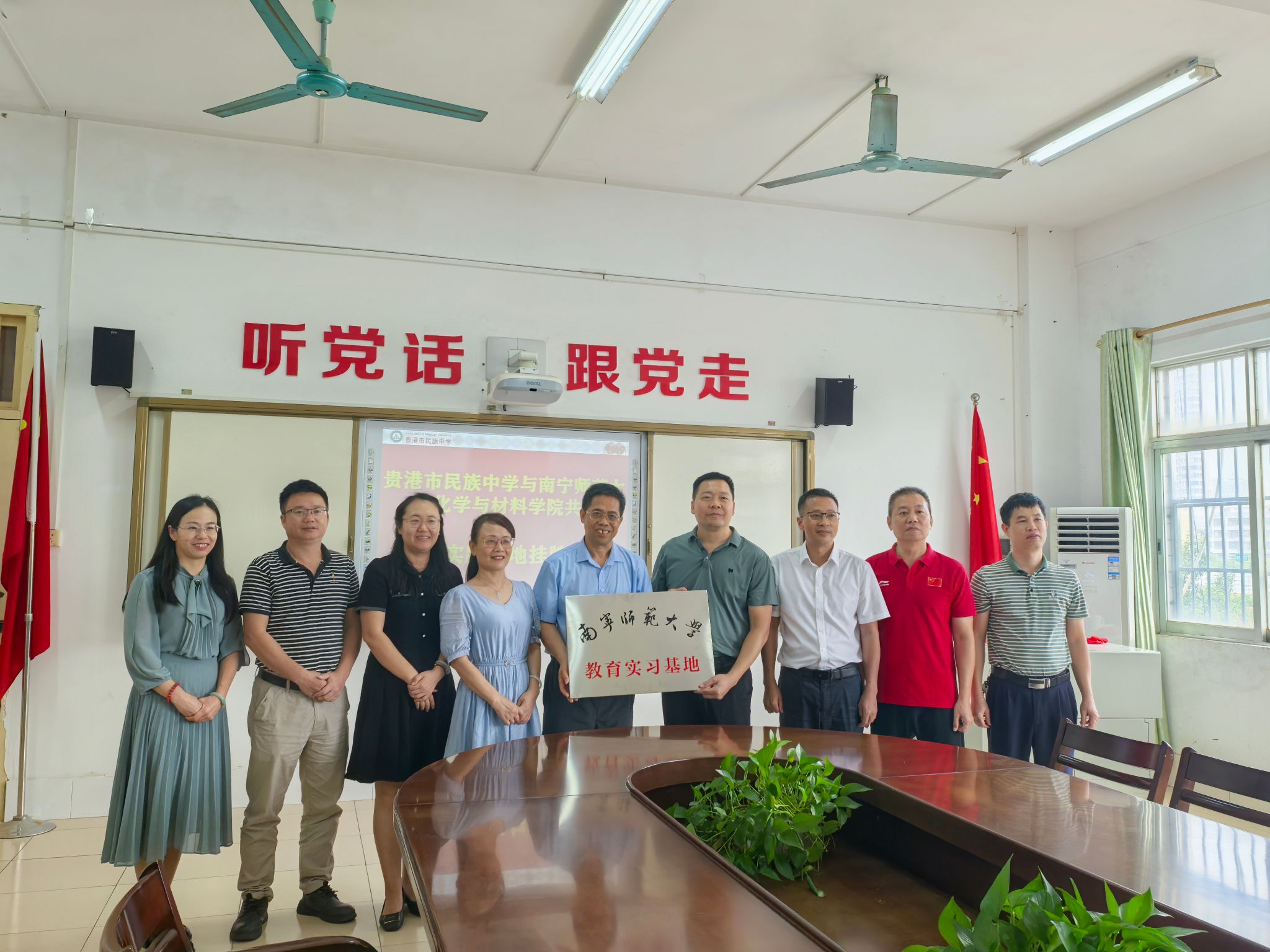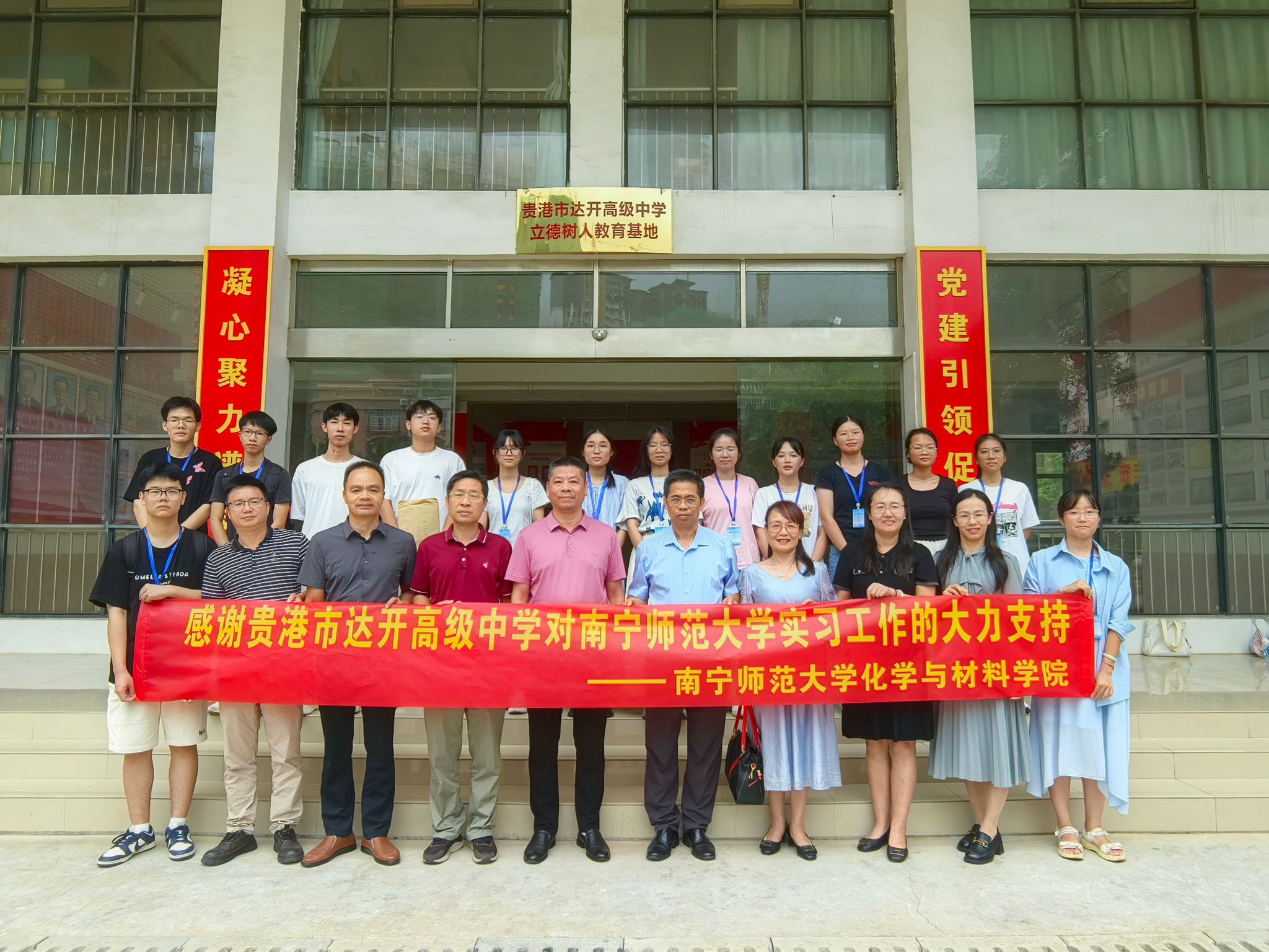 10月18日,化学与材料学院党委书记屈泽明、副院长朱汝葵、副书记陈今浩、副院长杨晶及教师代表汤希雁等一行,前往贵港市民族中学和贵港市达开高级中学,分别开展教育实践基地挂牌及教育实习中期检查等系列活动。