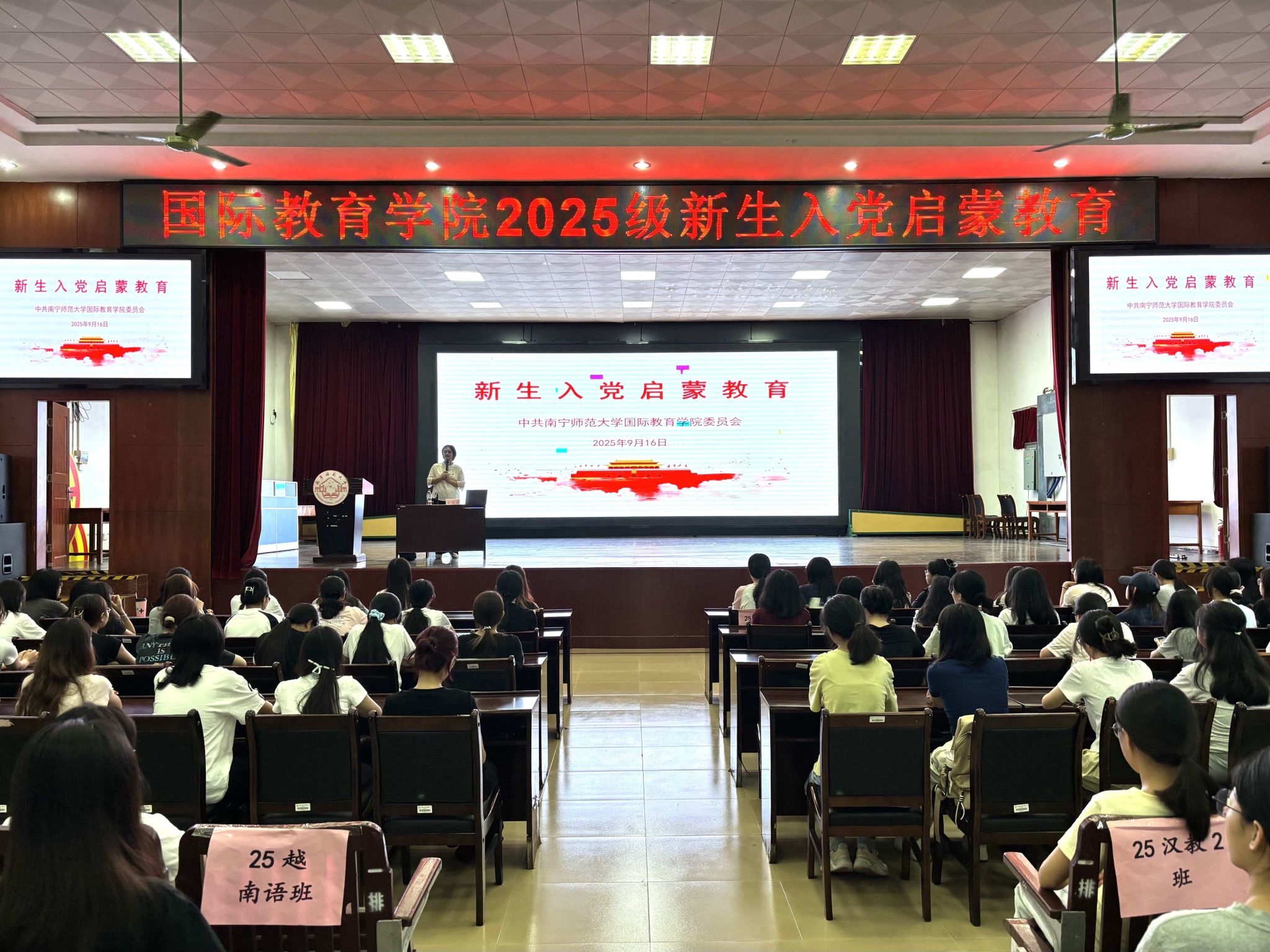 为加强新生思想引领,筑牢理想信念根基,进一步增进青年大学生对中国共产党的认识,9月16日下午,国际教育学院在明秀校区会堂举行2025级新生入党启蒙教育大会,学院党委书记旷晓霞主讲课程,2025级全体新生参加。会议由学院团委书记张焱主持。