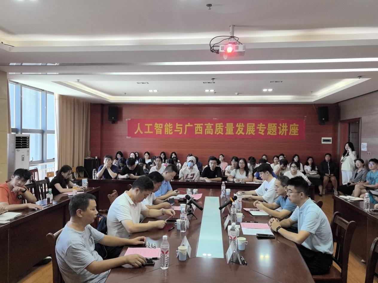 本次专题讲座是广西壮族自治区社会科学界联合会立项的社会智库专题讲座之一,为了进一步拓展深化广西社科界在人工智能领域的研究成果,充分发挥社会智库在推动区域发展中的重要作用。通过本次讲座系统梳理了人工智能技术在推动广西产业结构优化、区域协同和面向东盟的国际合作等方面的重要作用,既有理论高度,又紧密结合广西发展实际,对强化学科交叉与研究应用具有积极意义。
