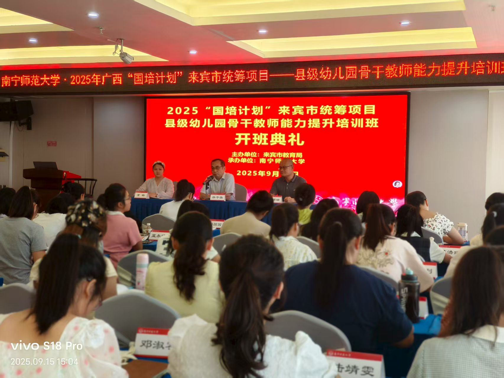 9月15日,由来宾市统筹规划、南宁师范大学教育科学学院承办的2025年“国培计划”项目--县级幼儿园骨干教师能力提升培训班在来宾市顺利开班。