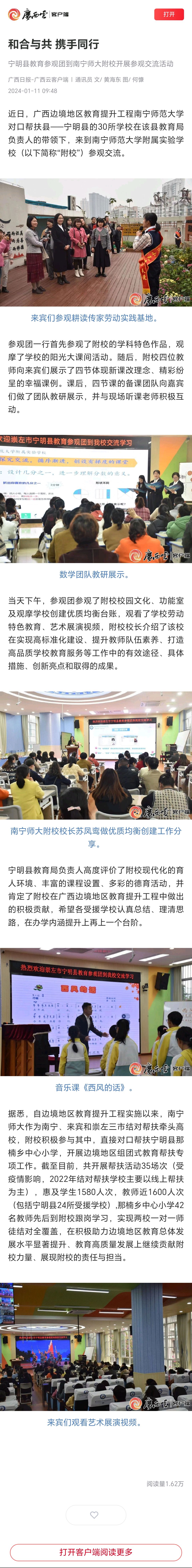 【广西日报】和合与共 携手同行 宁明县教育参观团到南宁师大附校开展参观交流活动