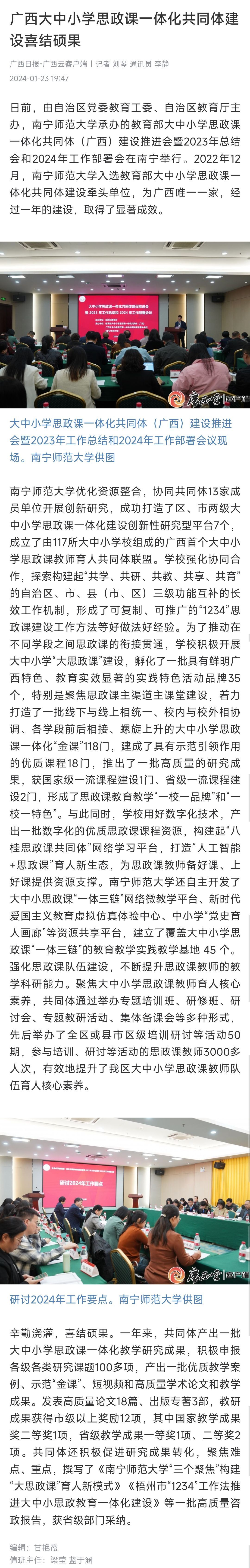 【广西日报】广西大中小学思政课一体化共同体建设喜结硕果