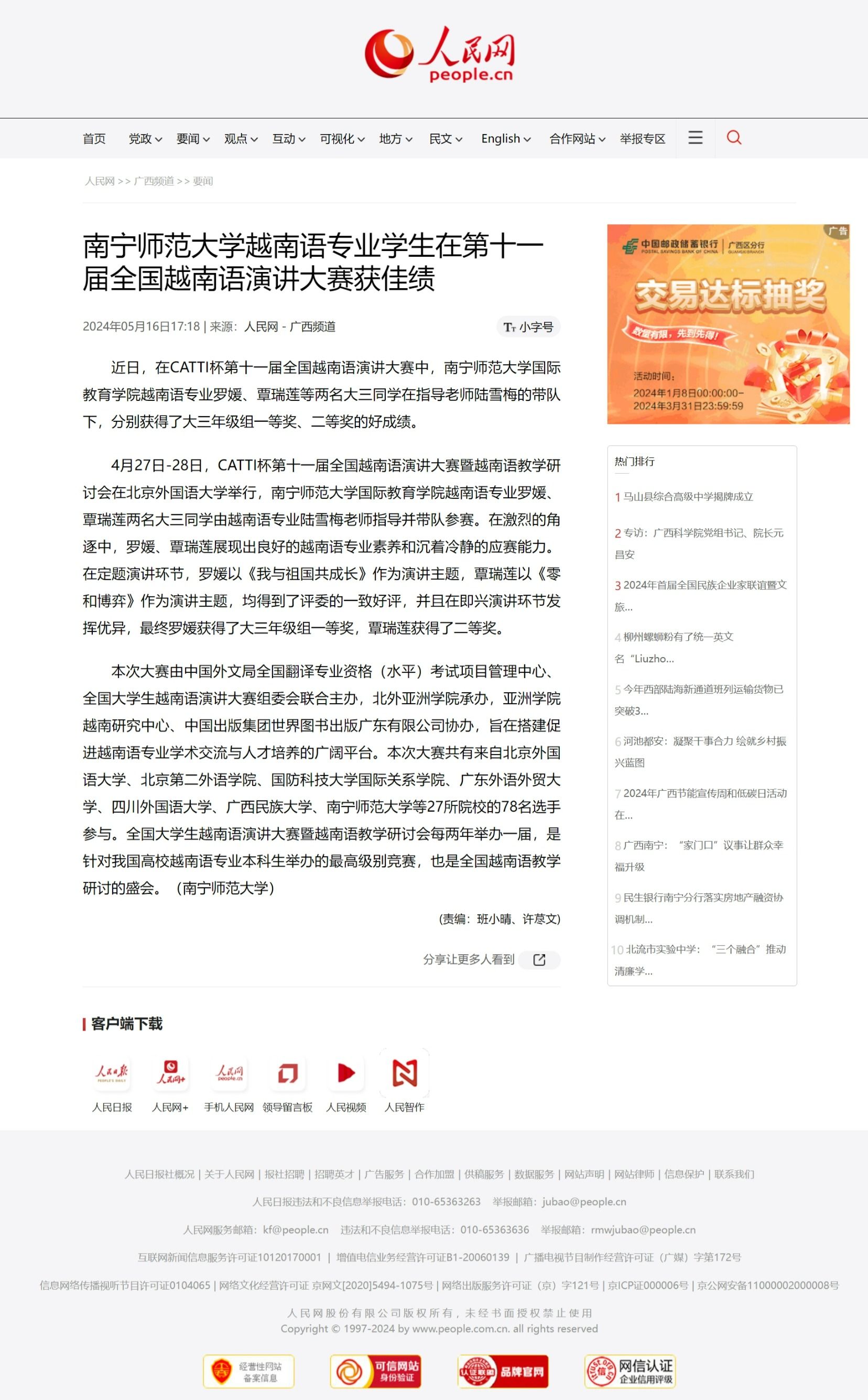 南宁师范大学越南语专业学生在第十一届全国越南语演讲大赛获佳绩 (people.com.cn)