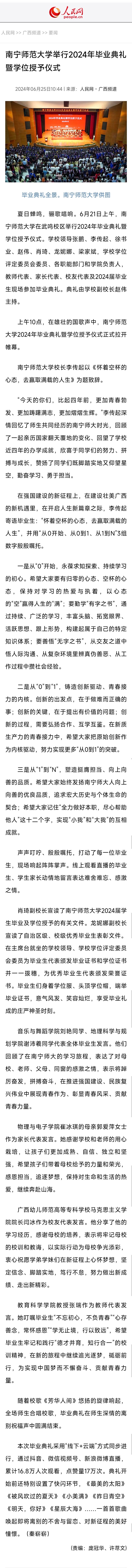 【人民网】南宁师范大学举行2024年毕业典礼暨学位授予仪式