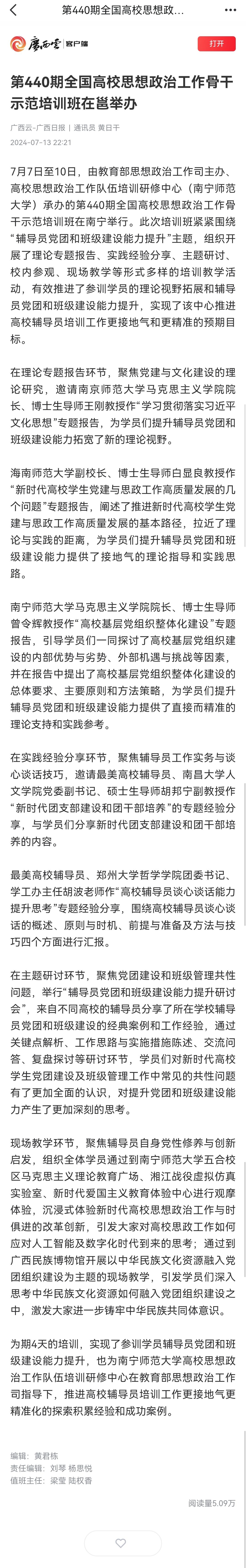 【广西日报-广西云客户端】第440期全国高校思想政治工作骨干示范培训班在邕举办