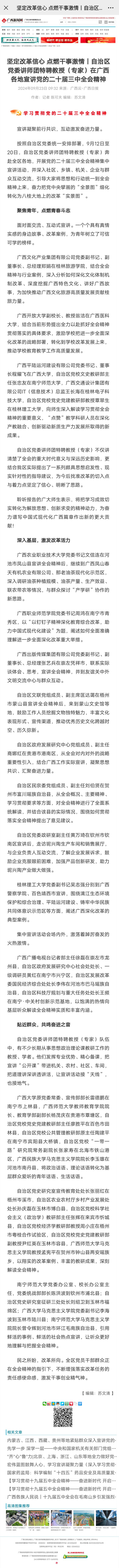 【广西新闻网】坚定改革信心 点燃干事激情丨自治区党委讲师团特聘教授(专家)在广西各地宣讲党的二十届三中全会精神
