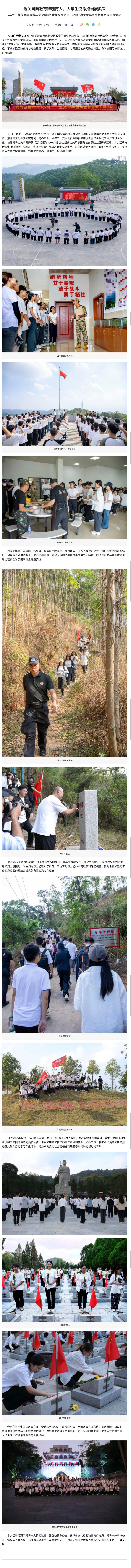 【今日广西】边关国防教育铸魂育人,大学生使命担当展风采——南宁师范大学旅游与文化学院“我为祖国站岗一小时”边关军事国防教育思政主题活动