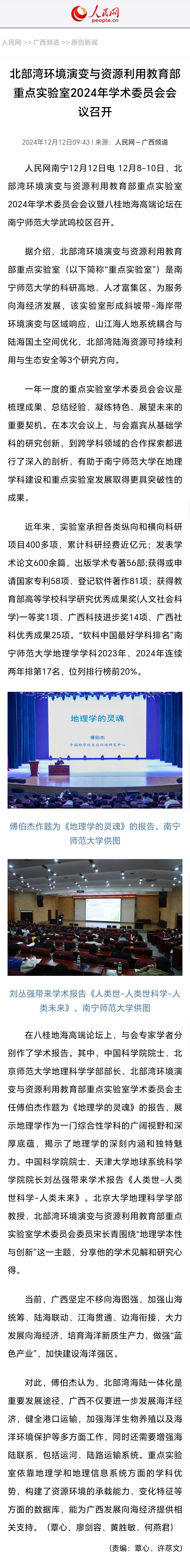 【人民网】北部湾环境演变与资源利用教育部重点实验室2024年学术委员会会议召开