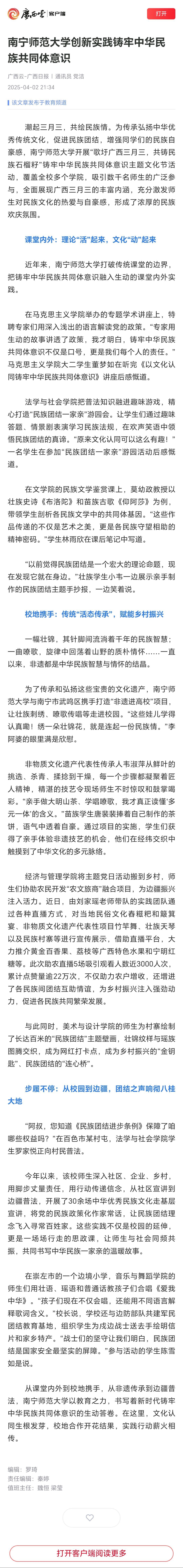 【广西云-广西日报】南宁师范大学创新实践铸牢中华民族共同体意识