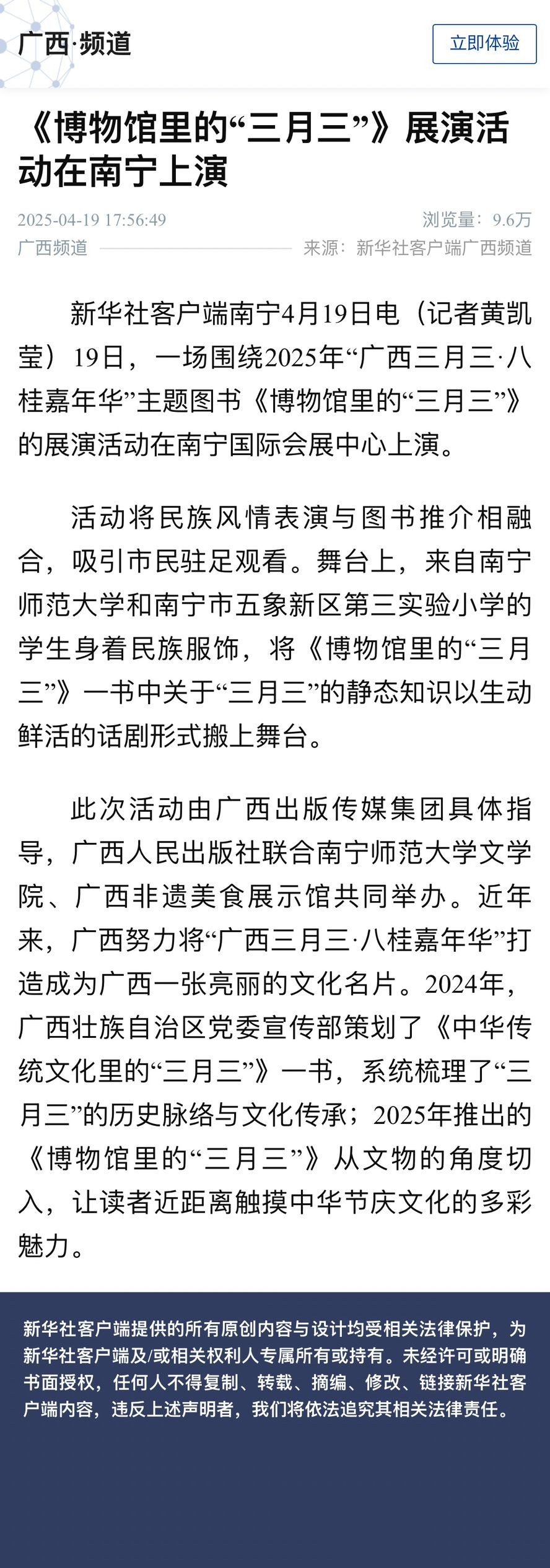【新华社】《博物馆里的“三月三”》展演活动在南宁上演