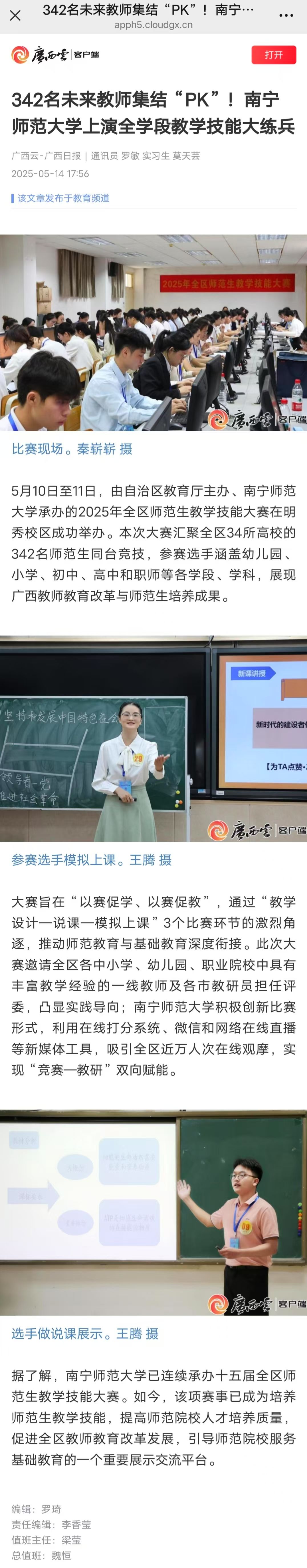 【人民网】2025年全区师范生教学技能大赛在南宁师范大学举行