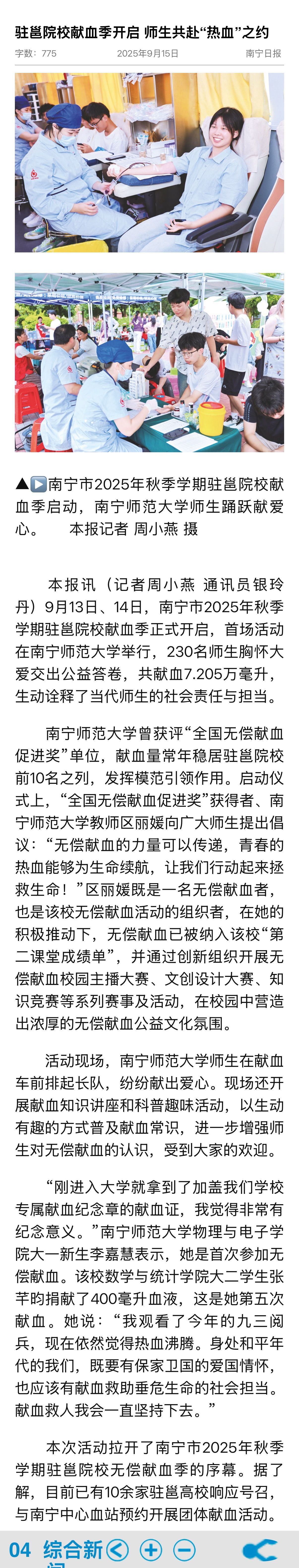 【南宁晚报】来一场青春的“热血”奔赴 南宁市2025年秋季学期驻邕院校首场献血活动启动