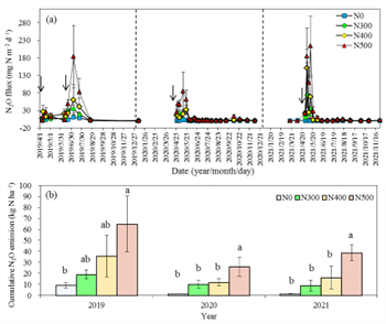 本研究依托由地海院主建的广西金光农田生态系统野外科学观测研究试验站,连续观测了不同施氮量对3个甘蔗生长季期间N2O排放量、N2O和土壤无机氮(NH4+和NO3–) δ15N值、甘蔗产量和氮素吸收量的影响。本研究量化了不同施氮量对甘蔗系统N2O排放的影响,强调了通过优化氮肥施用量来减少N2O排放的巨大潜力。