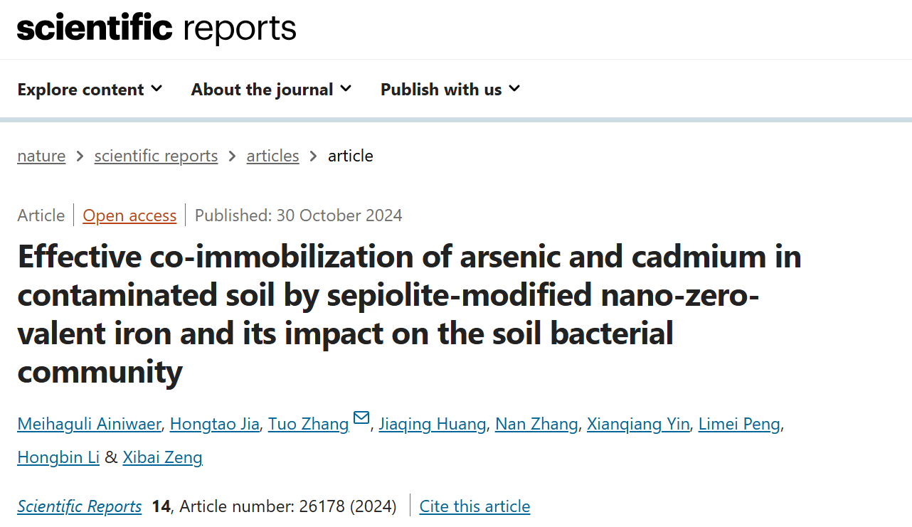 近日,我校环境与生命科学学院张拓副教授分别与北京大学、新疆农业大学、中国农业科学院和湖南省农业科学院合作在工程技术/化工领域著名期刊《Separation and Purification Technology》(中科院1区TOP,JCR1区,IF2023=8.1),综合类领域期刊《Scientific Report》(中科院2区,JCR1区,IF2023=3.8)、农业综合领域期刊《AgricultureBasel》(中科院2区,JCR 1区,IF2023=3.3)等著名期刊发表了4篇高水平研究论文。上述文章深度探究了新型环境功能材料UiO-66-SH、海泡石负载纳米零价铁S-nZVI和纳米水铁矿在水体和土壤环境中对砷和镉两种重金属的同步钝化过程机制和重金属污染在土壤长期耕作条件下潜在的迁移释放过程机制。张拓副教授为上述4篇论文的通讯作者,南宁师范大学作为参与单位完成相关研究。上述多项研究工作得到了国家自然科学基金、国家重点研发计划课题、四川省自然科学基金和中央级科研院所基本科研业务费的支持。