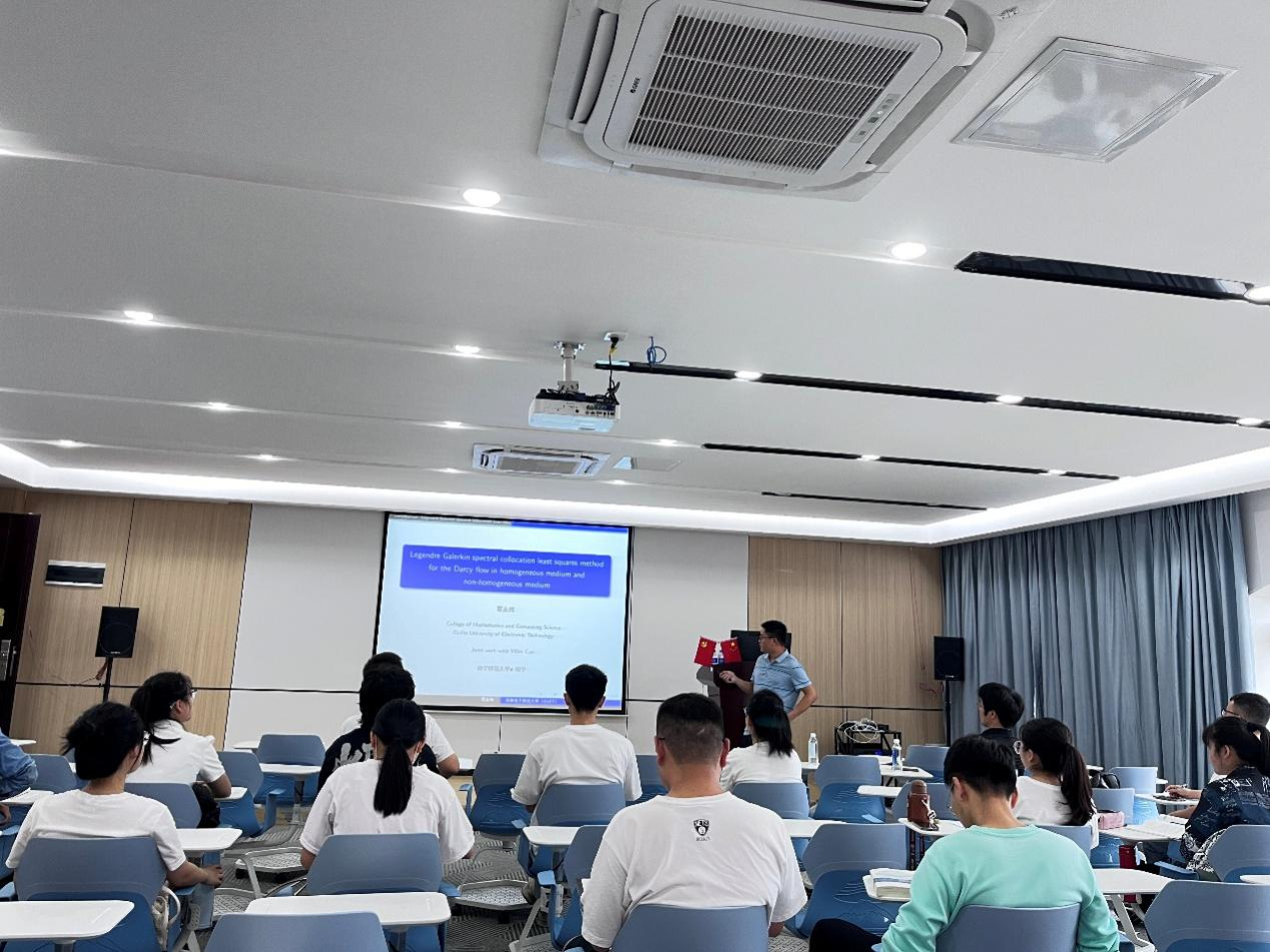 在报告中,覃永辉博士介绍了达西流问题和谱方法的发展情况。通过引入最小二乘法等,给出了达西流微分方程的高精度数值格式。覃博士通过三个不同的数值例子给在场师生展示了数值格式的计算效率,并就师生所提出的关于流体、谱方法等方面的问题进行了耐心细致地解答。