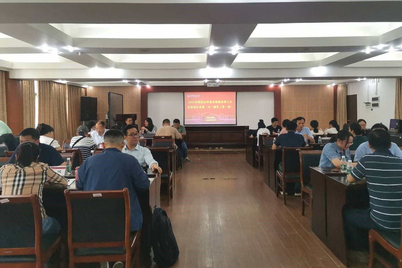 为推进我校2024年度国家社科基金和教育部人文社科项目申报工作,提高申报书质量和项目立项率,4月2日,由科研管理处主办的2024年国家社科基金和教育部人文社科项目申报一对一专家辅导会在明秀校区鸿远楼409会议室举行。