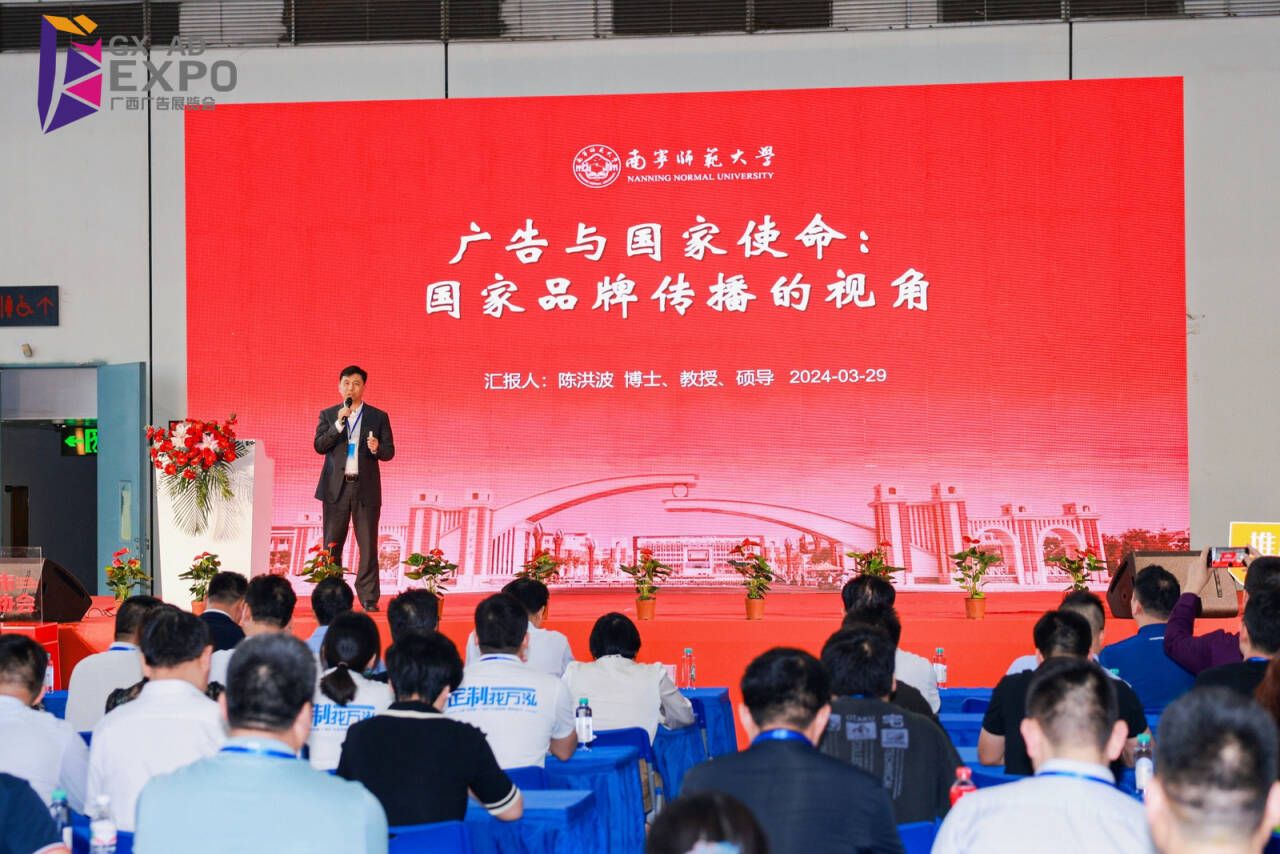 2024年3月29日,新闻与传播学院广告系师生在陈洪波院长带领下在南宁国际会展中心参加第25届广西广告展,陈洪波院长、王乃考教授作为演讲嘉宾在2024年广西广告传媒与标识融合发展论坛上做主题发言。论坛由南宁市广告协会、广西标识行业协会主办,来自广西有关政府部门、广告行业相关协会、企业、高校师生等200余人参加活动。