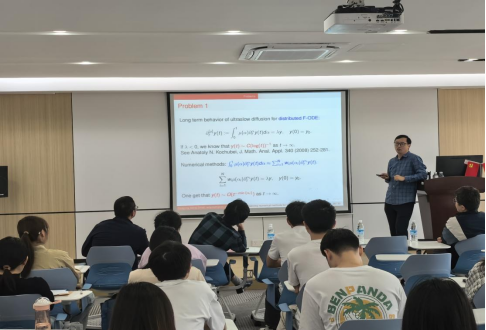 王冬岭教授介绍时间分数阶反常扩散模型保结构算法的一些主要进展,并针对时间分数阶长时间计算的相关科学问题,提出了一系列具有保结构特性的算法。同时,针对线性与非线性问题,提出“完全单调保持(CM-preserving)格式”,确保数值解在长时间尺度下保持和连续解一样的衰减率。