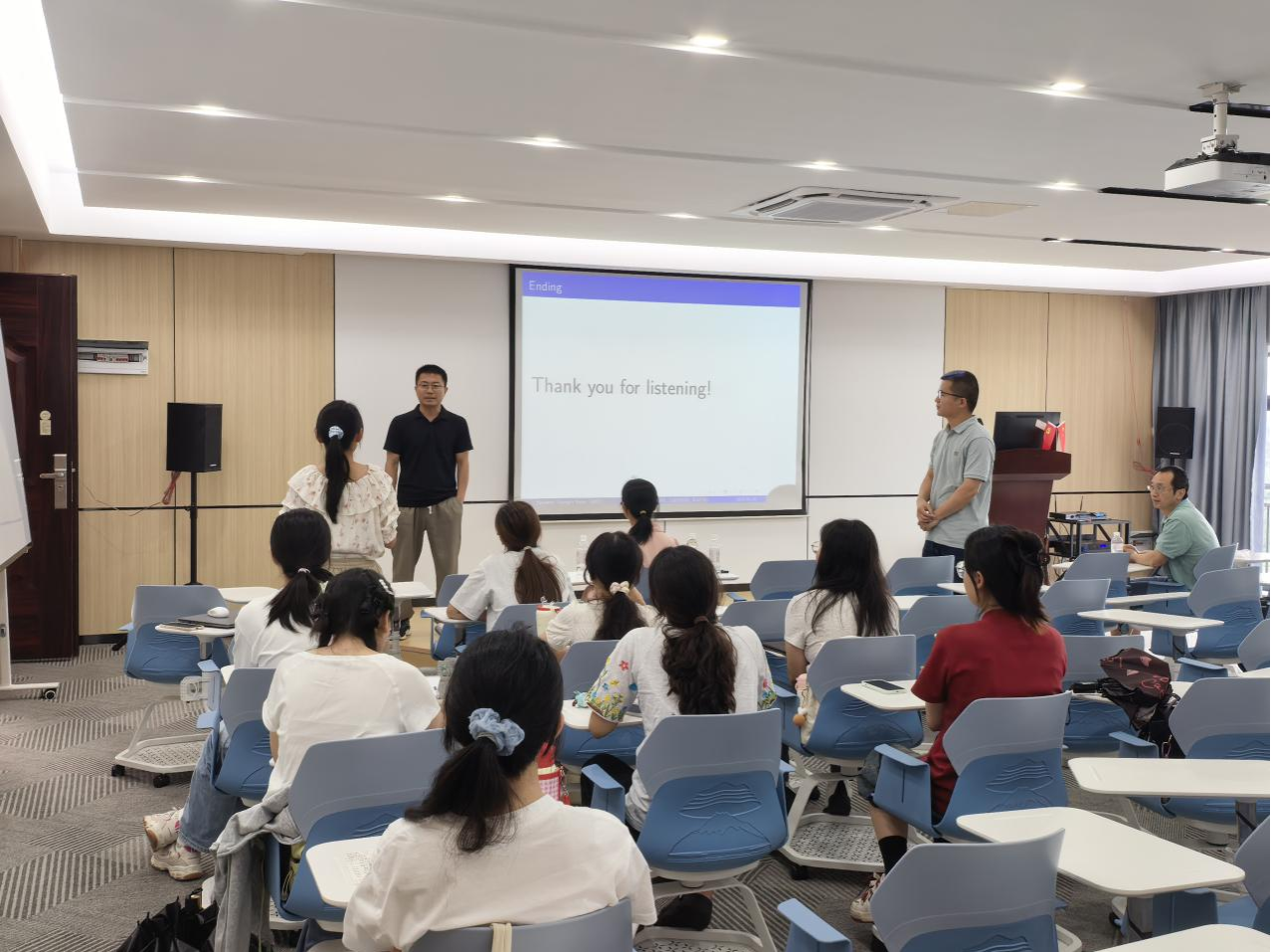 会后,朱教授和袁教授就现场师生所提出部分问题进行了耐心细致地解答。这次学术报告会现场学术氛围浓厚,报告内容理论深刻,兼具前沿性与应用价值,为动力系统领域的研究提供了新的思路,也为师生提供了了解机器学习前沿算法的宝贵机会,进一步促进了校际学术交流与合作。