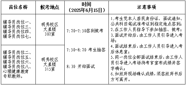 (一)时间:2025年6月15日,上午8:30开始面试