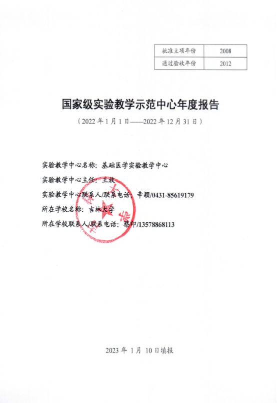 4.中心王放教授被聘任为高等学校国家级实验教学示范中心联席会基础医学组副组长,吉林大学为副组长单位。