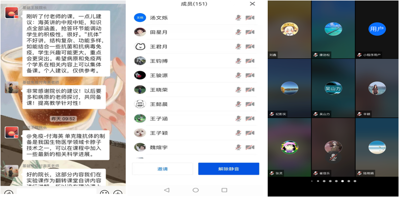 自3月8日线上教学开始,通过与学系主任、教学秘书、任课教师的电话沟通、线上问卷调查,以及督导的听课反馈,学院汇总了教师对于线上教学的需求与建议,并针对线上教学平台如何的熟练的综合运用,线上教学的课堂设计等共性问题,于3月17日、3月21日和3月22日,分别在云端组织了理论课、实习课线上教学观摩和线上教学交流培训活动,让老师们体会了利用腾讯会议+同步课堂+虚拟资源三平台的有机结合,及设计抢答、问答、学生展示等多项互动活动,打造的良好线上教学效果。此次观摩结合培训的教学活动,促进了基础医学线上教学从有序开展到高质量的提升。