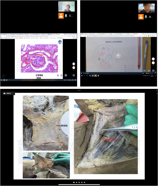 目前云顶国际8588yd已经开出实验课13门次,授课学生人数达1327人,不同的学系针对课程的特点,动态调整授课方法,确保实验教学高质量的进行。其中,病理学系组织召开了4次教学组培训与研讨,共同探讨了“同步课堂+腾讯会议+学系自建虚拟实践教学平台”的实验课授课新模式,完全实现了线下实验课的线上翻转。组织学与胚胎学系利用形态学虚拟实验教学系统,带领学生跟随老师的目光和讲解,一起观察人体组织的微观结构,并设置线上画图与共享,展示了学生对实验内容的掌握与运用。解剖学系通过超星学习通平台建立了完整的线上教学体系,学系召开网络会议组织全体成员学习直播操作,总结并制作了简化版详细的操作手册,及时调整了教学计划,做好老师在线答疑,取得了较好的教学效果。机能学实验则采用超星学习通+腾讯会议+梦之路虚拟实验平台+QQ群多平台进行教学的模式,课前在超星学习通平台发布课件以及学系前期录制实验操作视频等教学材料供学生学习及预习,课上从超星学习通平台进入腾讯会议进行直播授课,学生在了解实验内容后,在梦之路虚拟实验平台进行操作,有疑问的地方,教师在QQ群里进行答疑,并开展讨论。