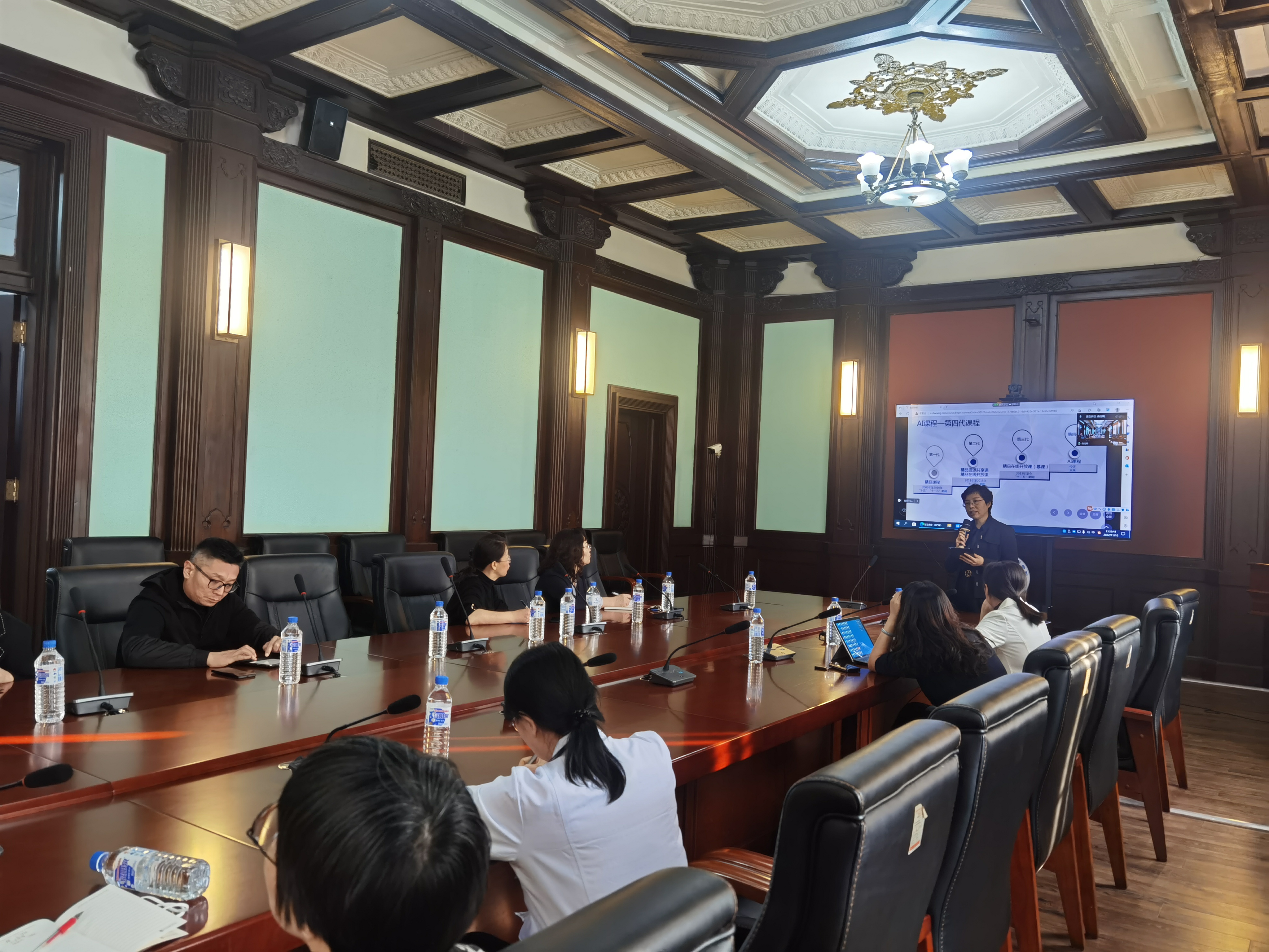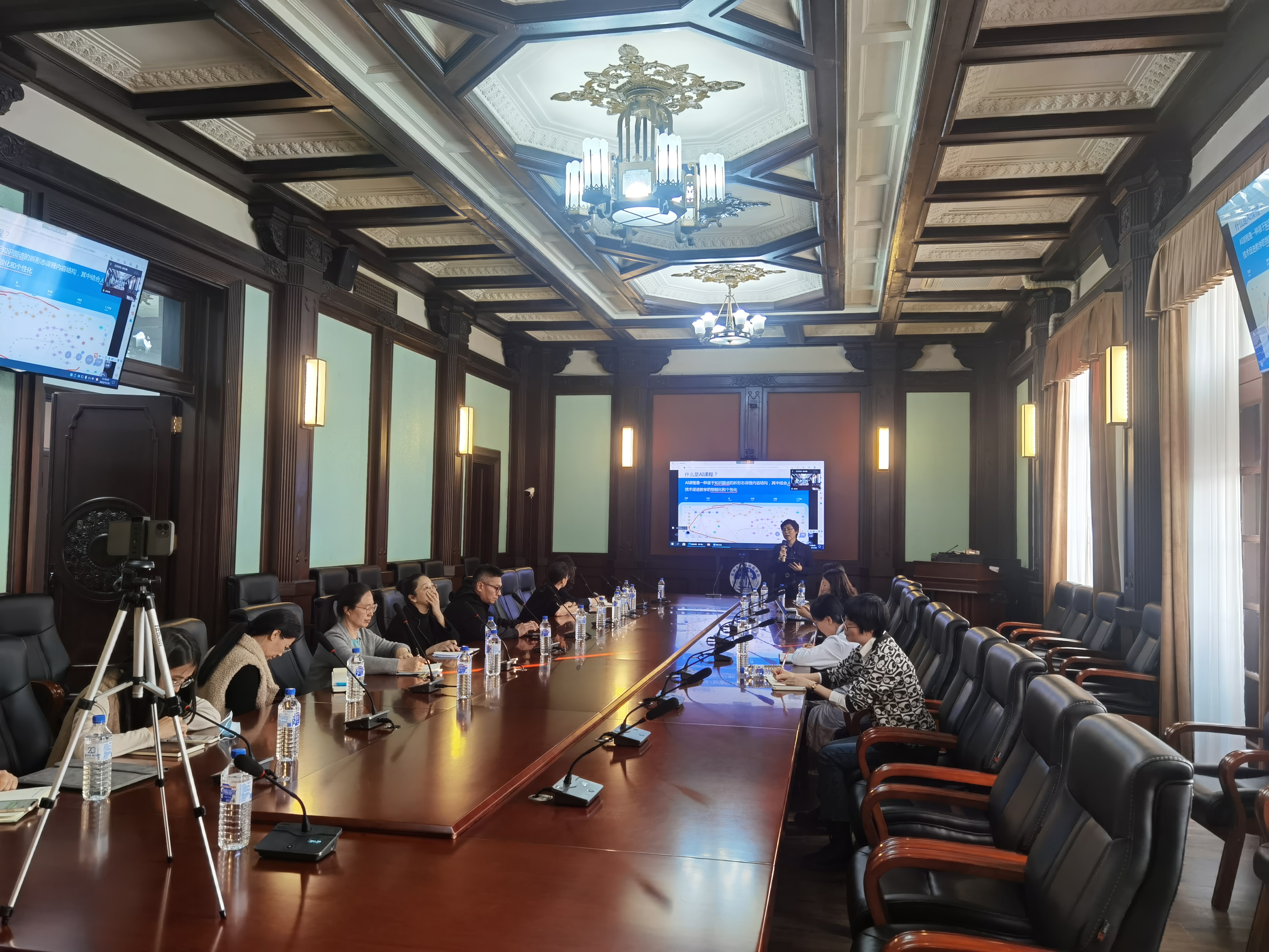 会议邀请了学院王医术教授、李晶教授和赵佳副教授分享课程建设经验。三位老师分别从AI课程的演变、虚拟仿真课程项目的申报、虚拟仿真实验的设计以及应用等多个方面进行了虚拟课程建设的经验分享。参会教师们就课程建设的前期积累、课程建设模式、工作团队组建、教学成果应用等方面展开了热烈讨论。院长王放教授表示,虚拟仿真教学系统的建设要符合高阶性、创新性与挑战度的要求,以提高课程质量为导向,提升实验教学质量和实践育人水平。
