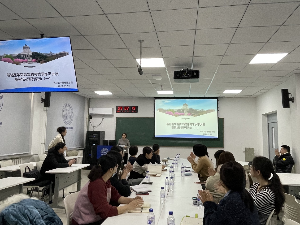 为做好学院青年教师教学水平大赛准备,提高青年教师教学能力和比赛水平, 1月12日上午学院邀请组织学与胚胎学系教师赵佳副教授开展第一期赛前培训活动,学院青年教师20余人参与培训,活动由教务办主任李辉主持。