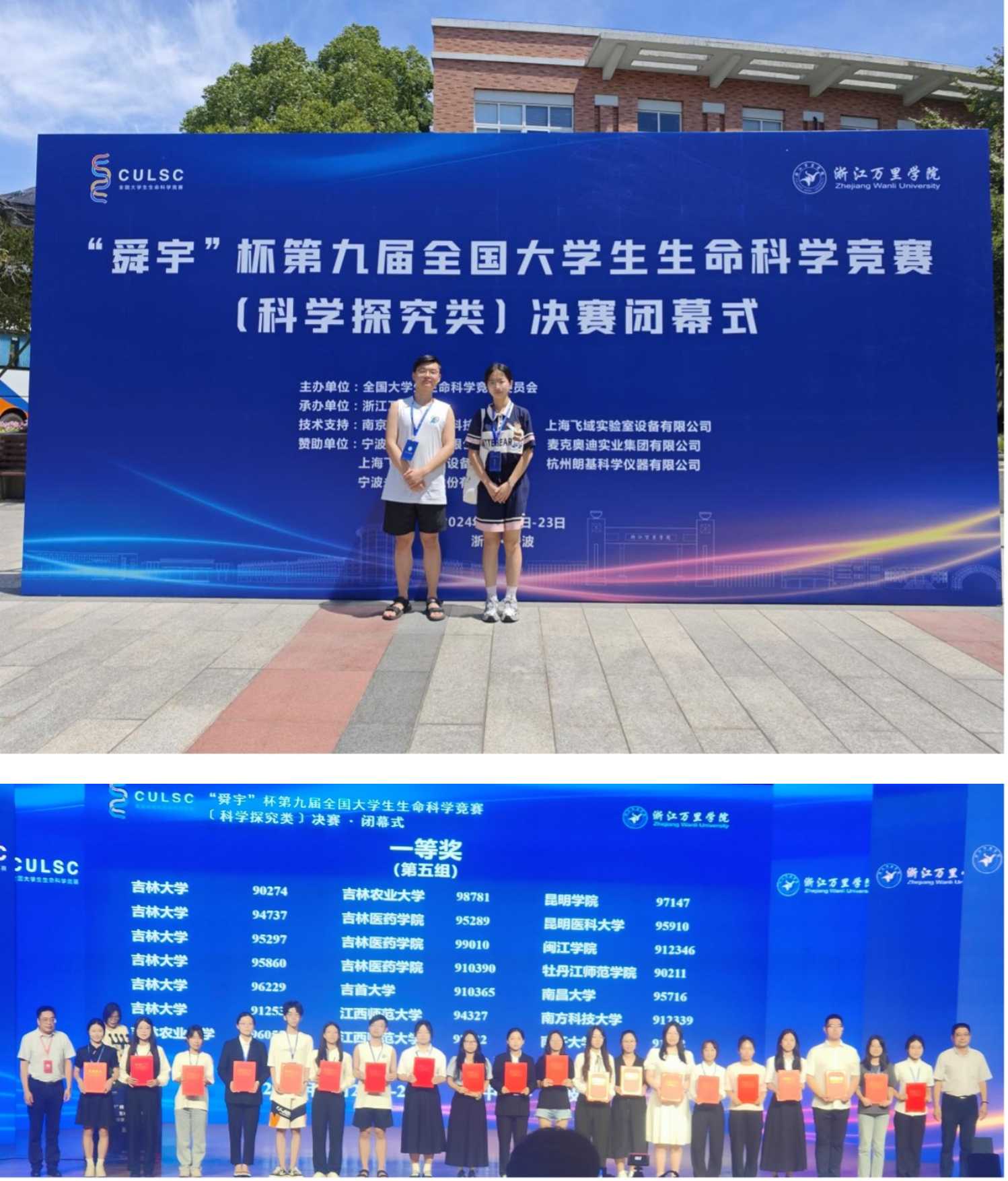 723日,由全国大学生生命科学竞赛委员会主办的第九届全国大学生生命科学竞赛(科学探究类)全国总决赛闭幕式在浙江宁波圆满落幕。我院教师指导参赛的9支学生队伍,获得全国一等奖2项,二等奖3项,三等奖4项。我院首届生物医学科学专业本科生队伍首次参与此项赛事,获得国家一等奖,取得了历史性突破。